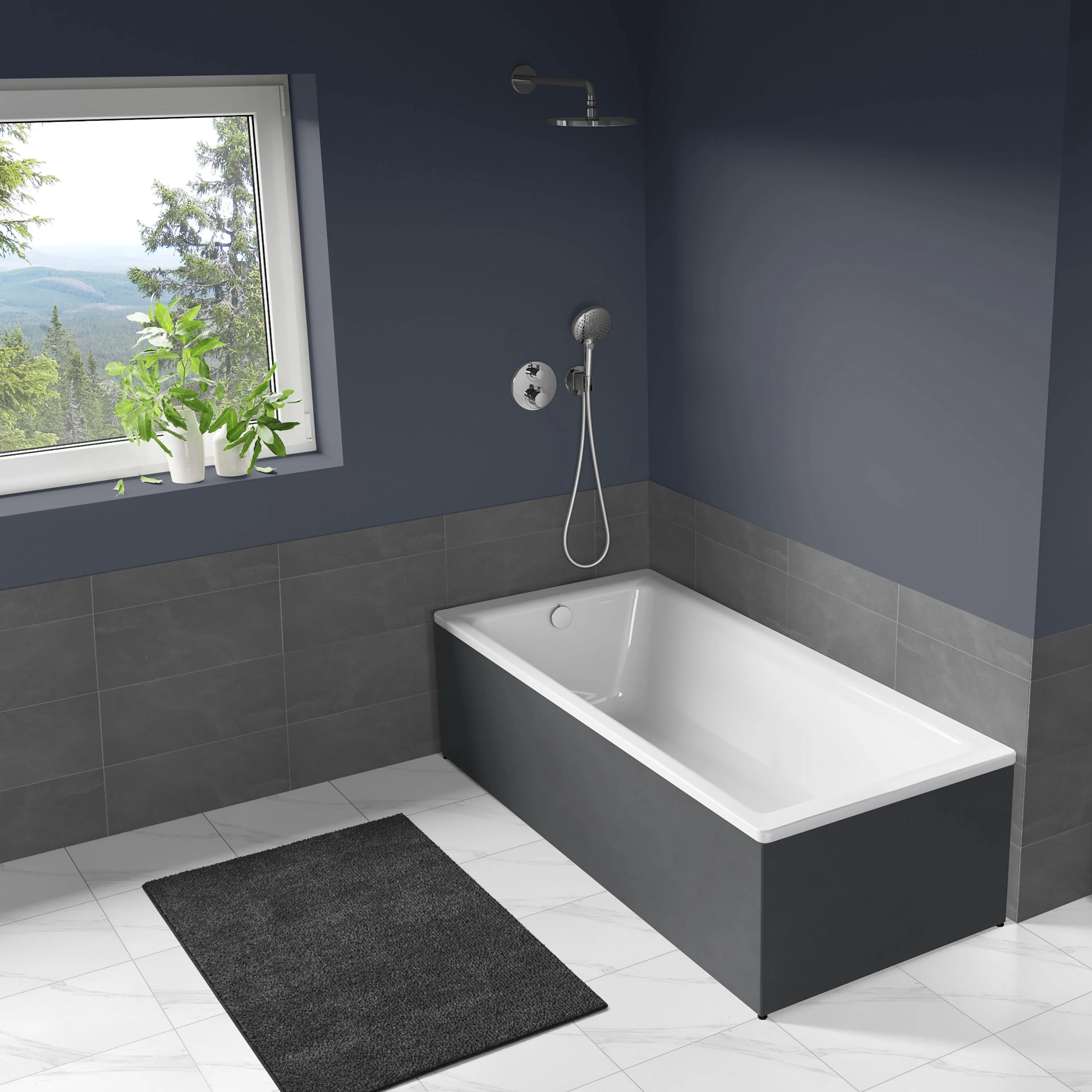 Badkar Langenfeld Puro är ett badkar i en modern och minimalistisk stil. Badkaret passar utmärkt för att både duscha och bada, då badkaret har en sluttande kortsida för att ligga emot och en rak kortsida för att komma närmare duschen. Långsidorna är rakare än traditionella badkar och skapar därför en större yta att både duscha och bada i.