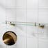 Glashylla av härdat klarglas med räcke. Väggplattans diameter är 45 mm.