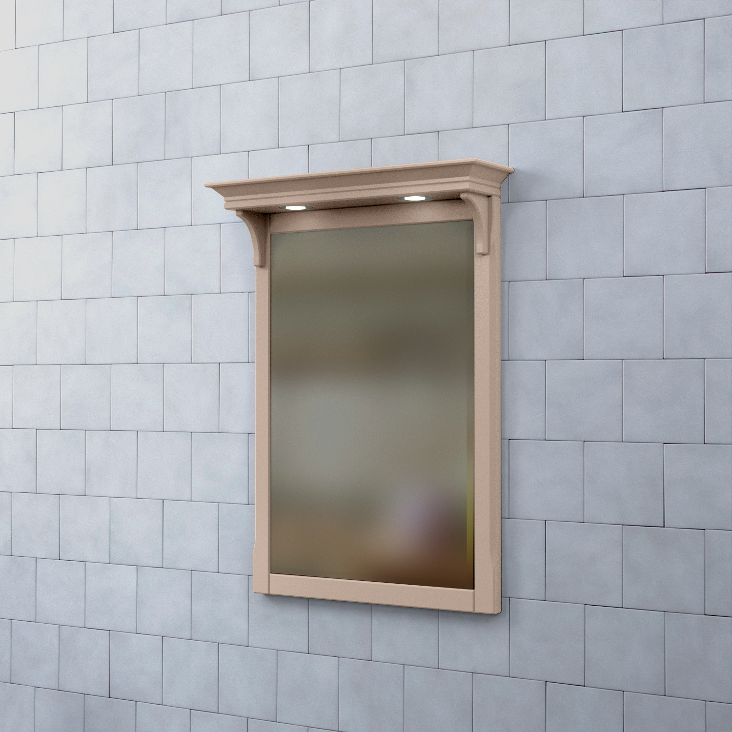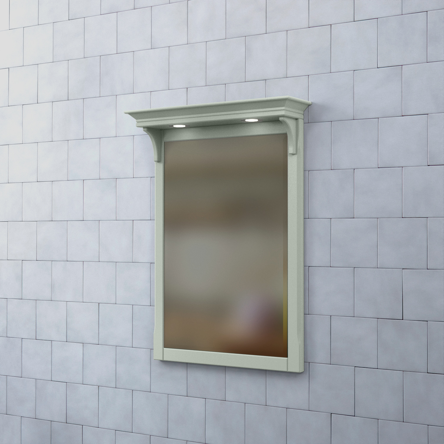 Spegel Saga med Belysning från Björbo Badrum är en elegant badrumsspegel med infällda LED-spottar. Denna spegel har en vacker krönlist som skapar en lyxig känsla. Den är tillverkad av målad MDF med spegelglas.