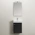 Tvättställsskåp med mjukstängande lucka som ger generös förvaring. Inklusive nedsänkt handfat och spegel. Tvättställsskåpet är enkelt att installera för en person med skena på vägg.