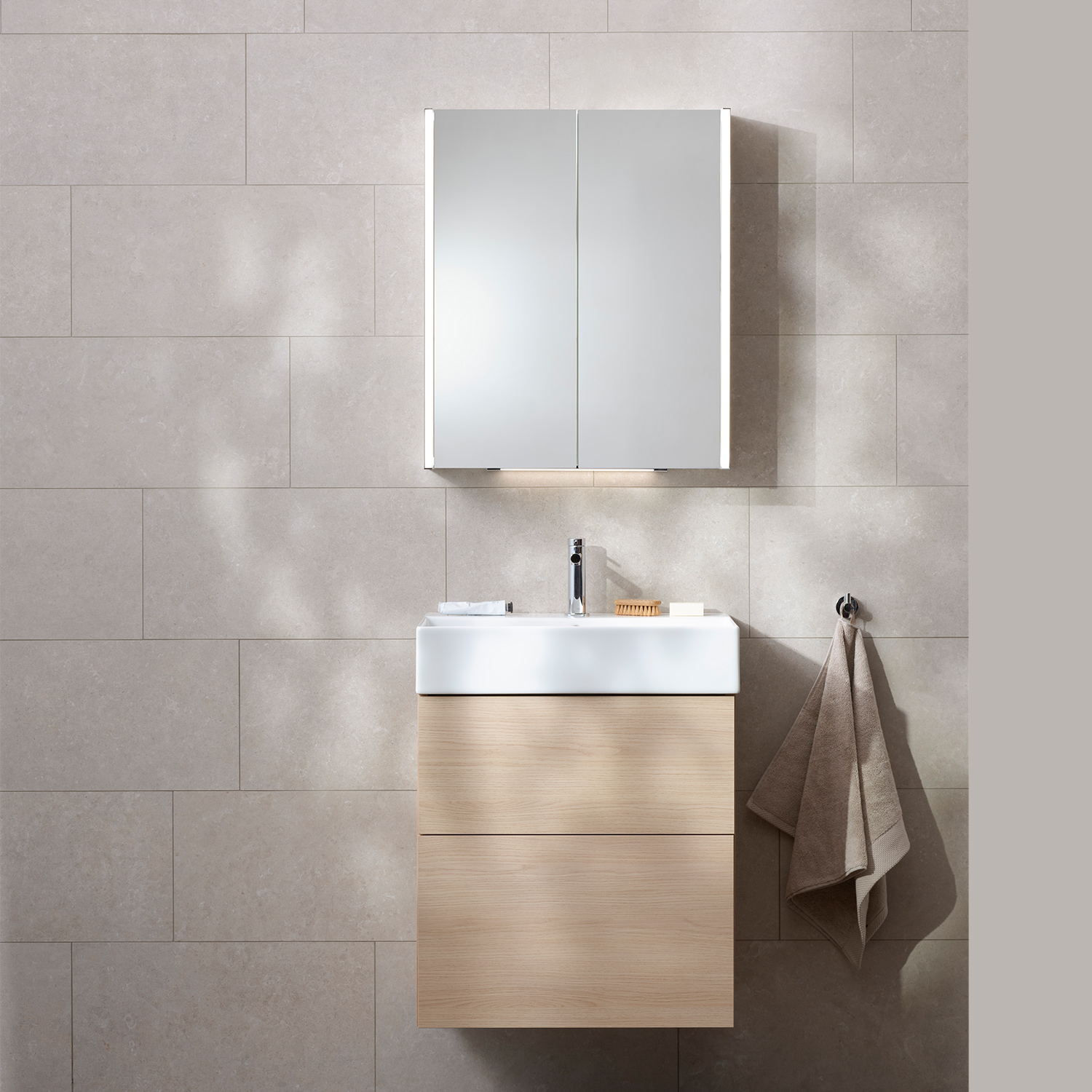 Möbelpaket Miller BadrumNew York med Bloc Tvättställ och SpegelskåpLjus Ek, B: 800 mm