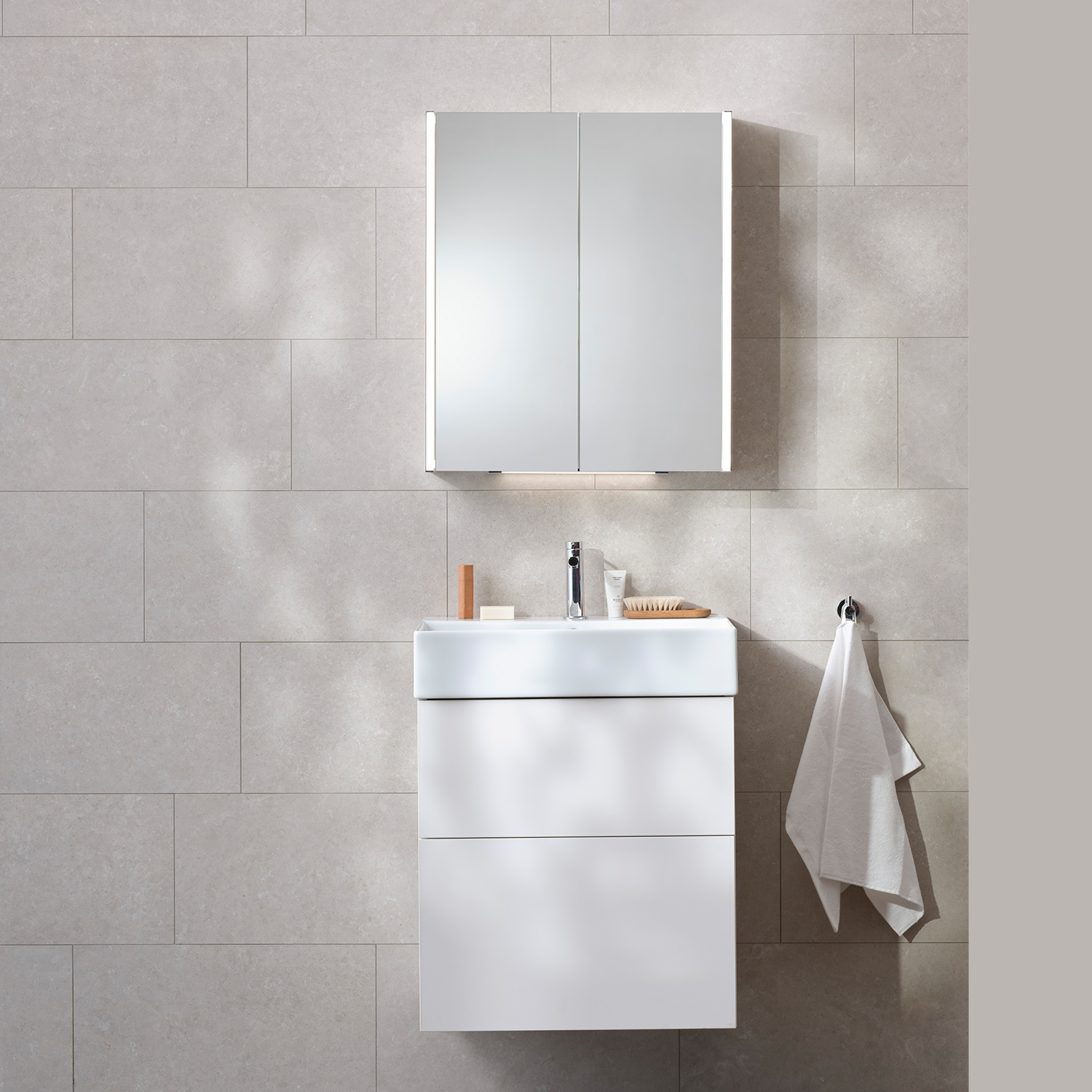 Möbelpaket från Miller Badrum med kommod, tvättställ och spegelskåp.