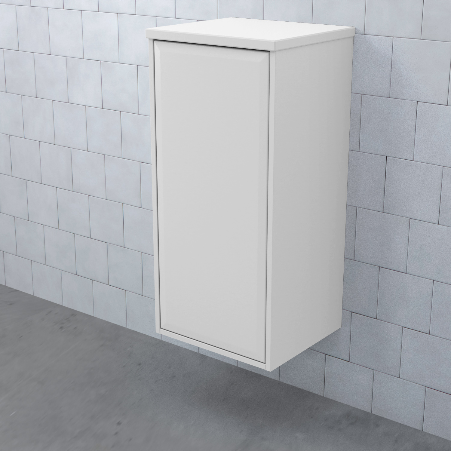Halvhögt Skåp Björbo Badrum Mejda är ett modernt skåp i stilrent utförande med en dämpad och självstängande lucka. Detta skåp är tillverkat av målat, fukttrögt skivmaterial. Skåpet levereras utan handtag.