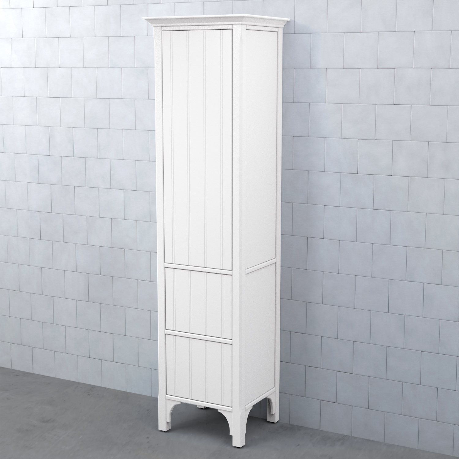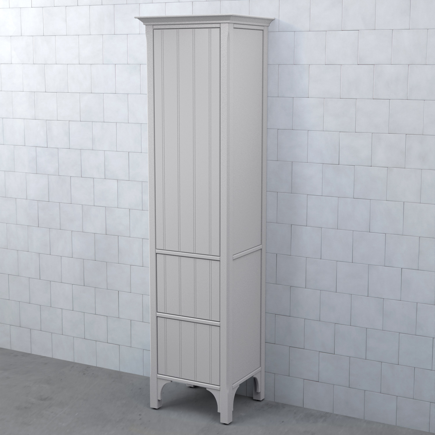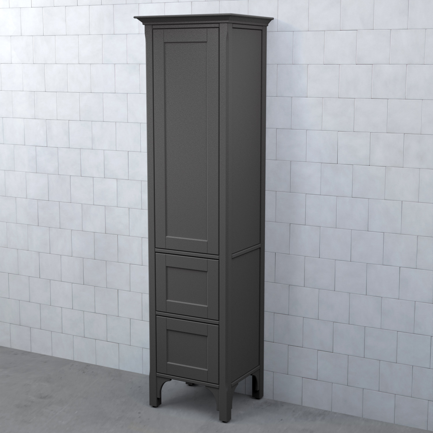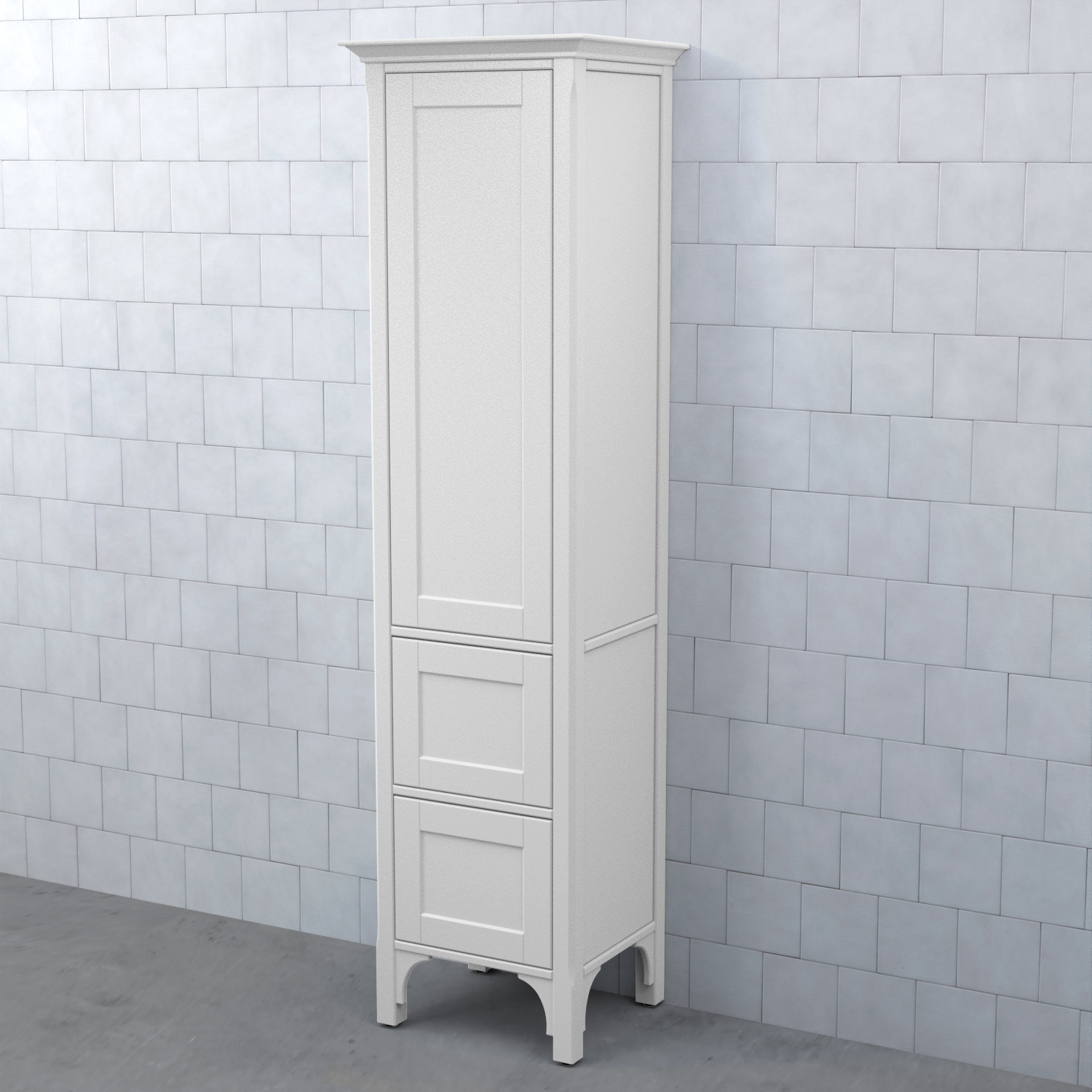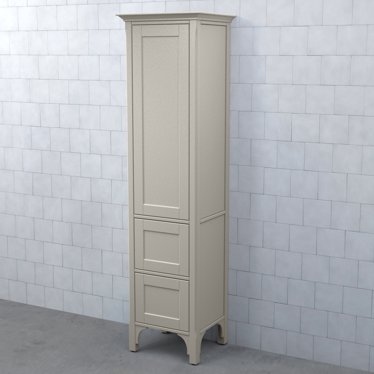 Högskåp Saga från Björbo Badrum är ett klassiskt högskåp i romantisk stil. Skåpet har en heltäckande lucka på övre delen och två djupa och mycket stabila fullutdragslådor i svartbetsat trä med mjukstängning och självindrag längst ner. Stommen är tillverkad av målad MDF.