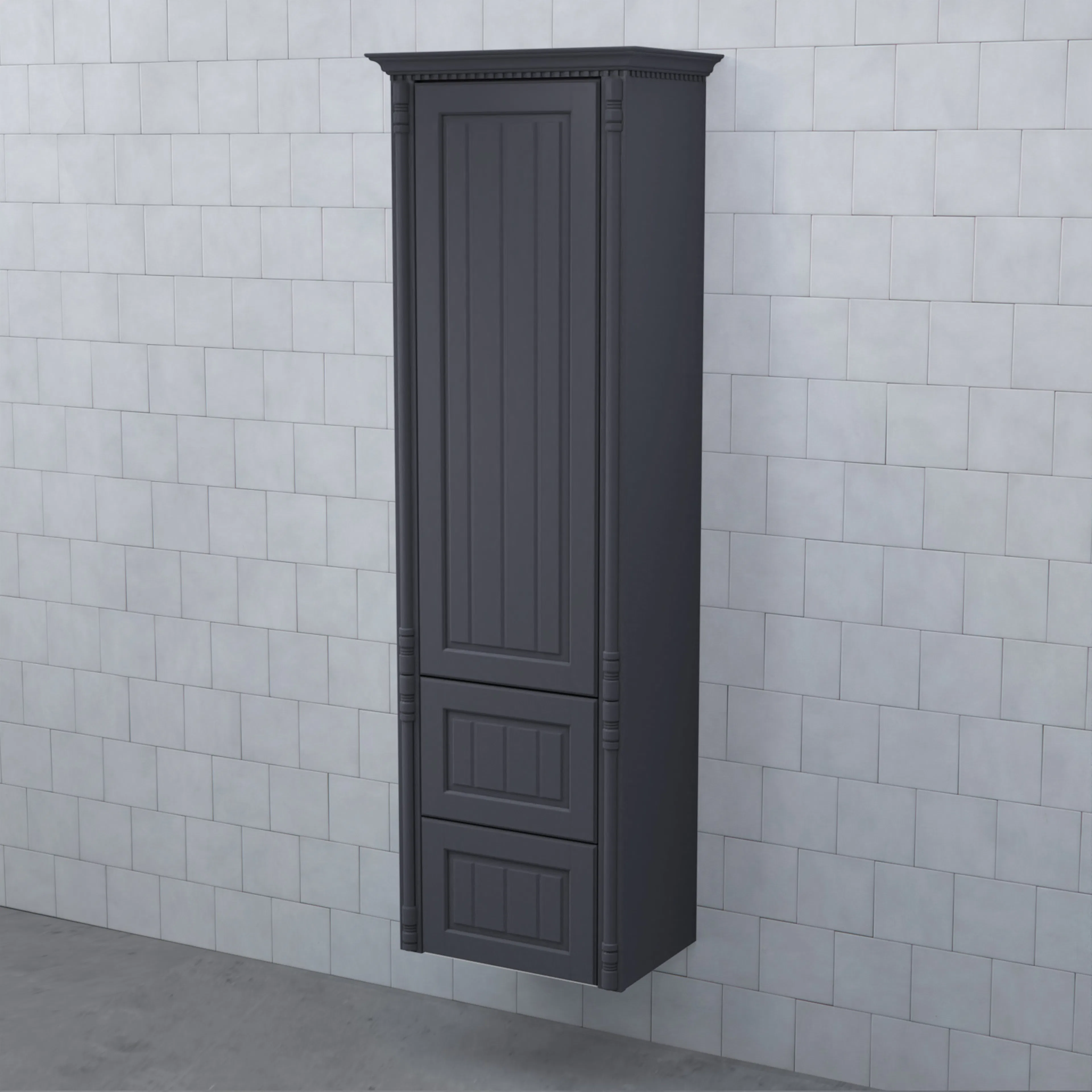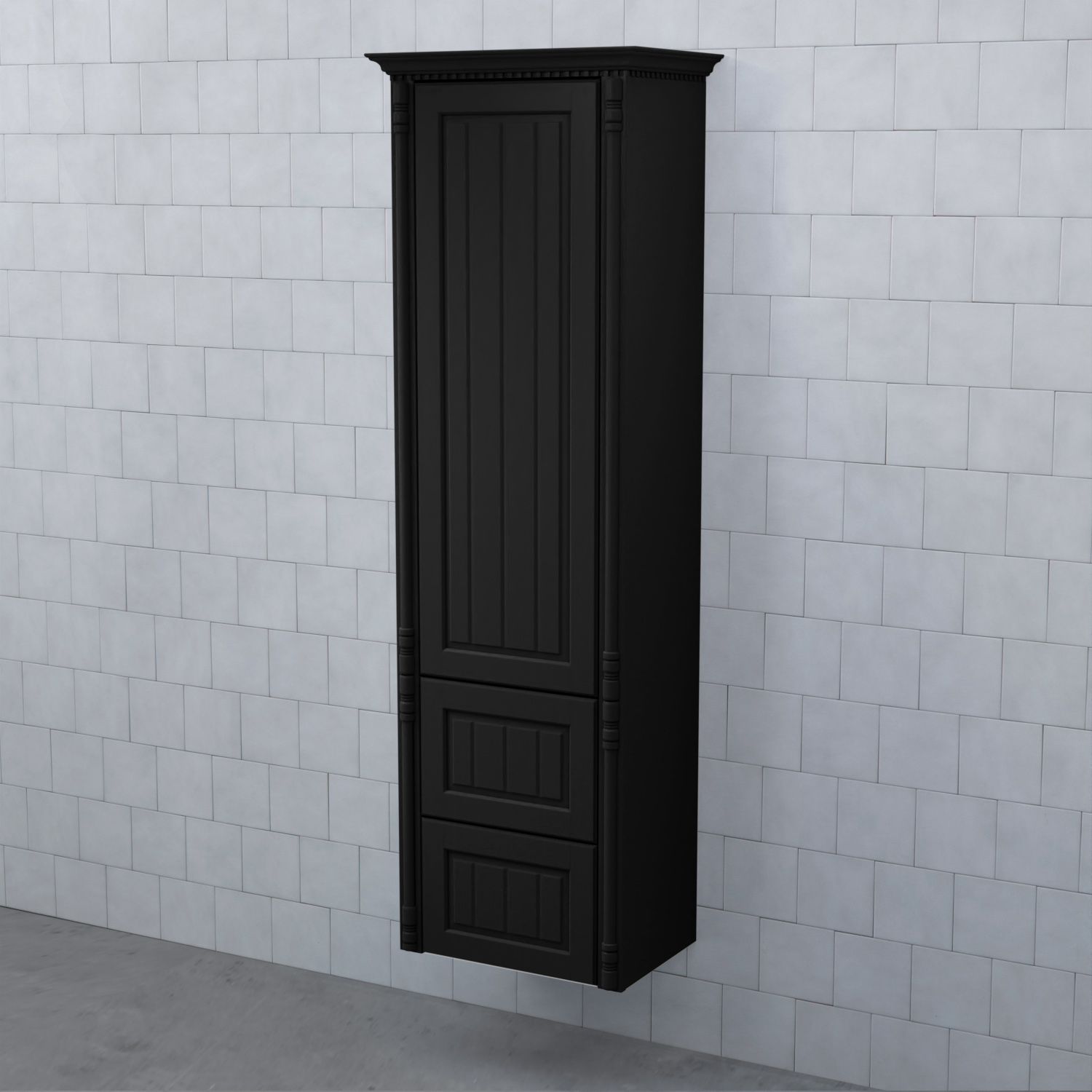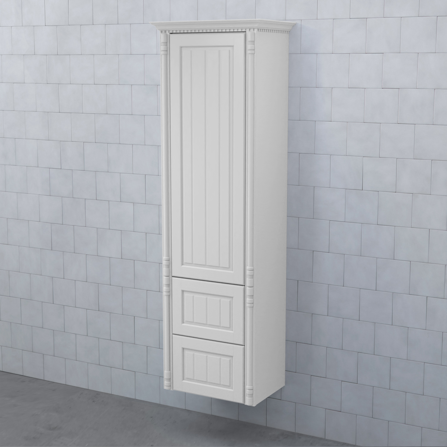 Högskåp Valhall med Lucka och 2 Lådor från Björbo Badrum är ett stilrent badrumsskåp med en lucka i övre delen av skåpet och två lådor i nederdelen. Lådorna är stabila fullutdraglådor med dämpning och självindrag. Skåpet har en tandad krönlist och pelare som stilfullt ramar in möbeln. Stommen är gjord av målad MDF med vackra ramluckor med utfrästa spår.