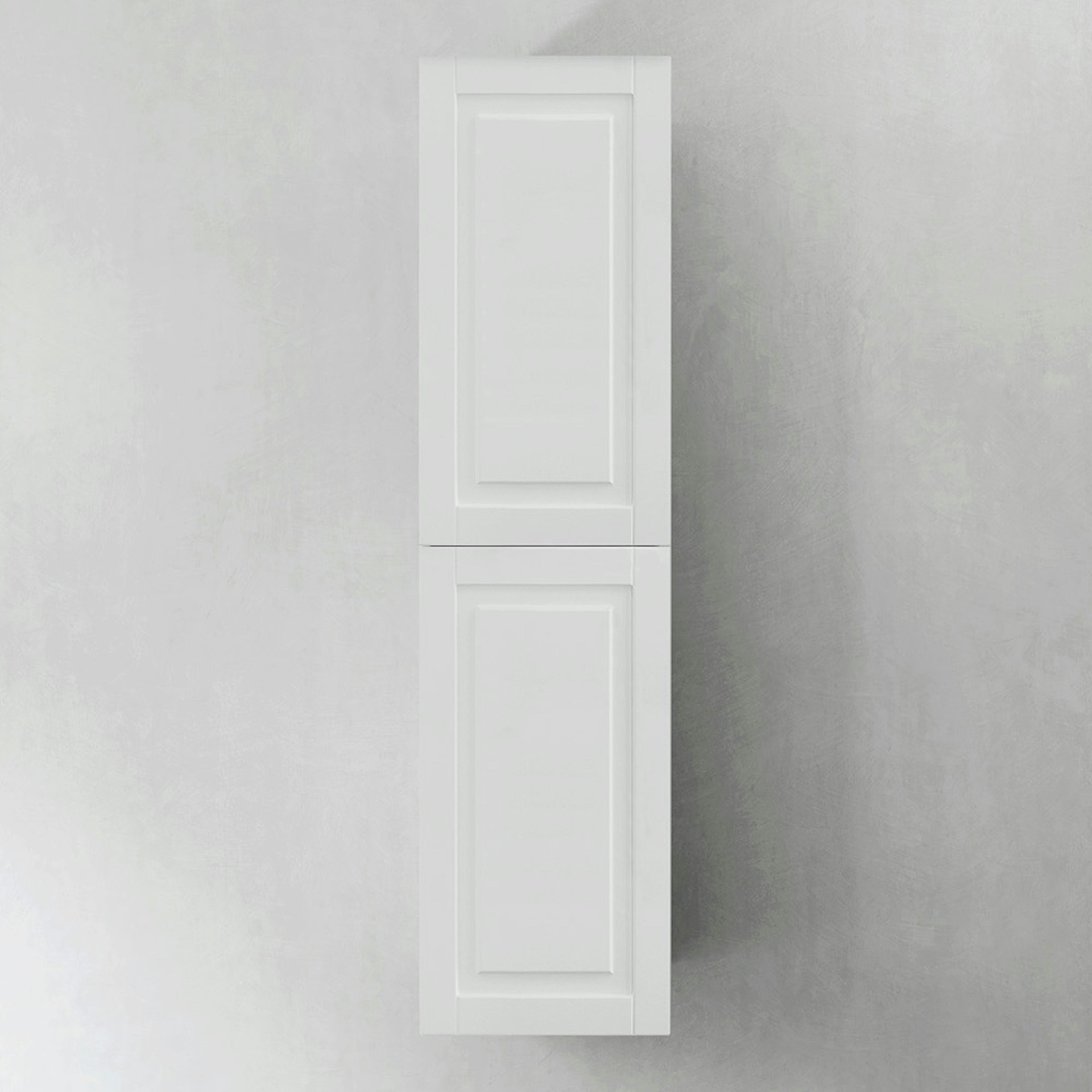 Hafa Grace är badrumsmöbler med vackert profilerade fronter utformade för att passa i såväl ett lantligt som ett modernt badrum i skandinavisk stil. Ett grunt högskåp utan handtag som öppnas med push-to-open. Luckorna kan monteras till höger eller vänster.