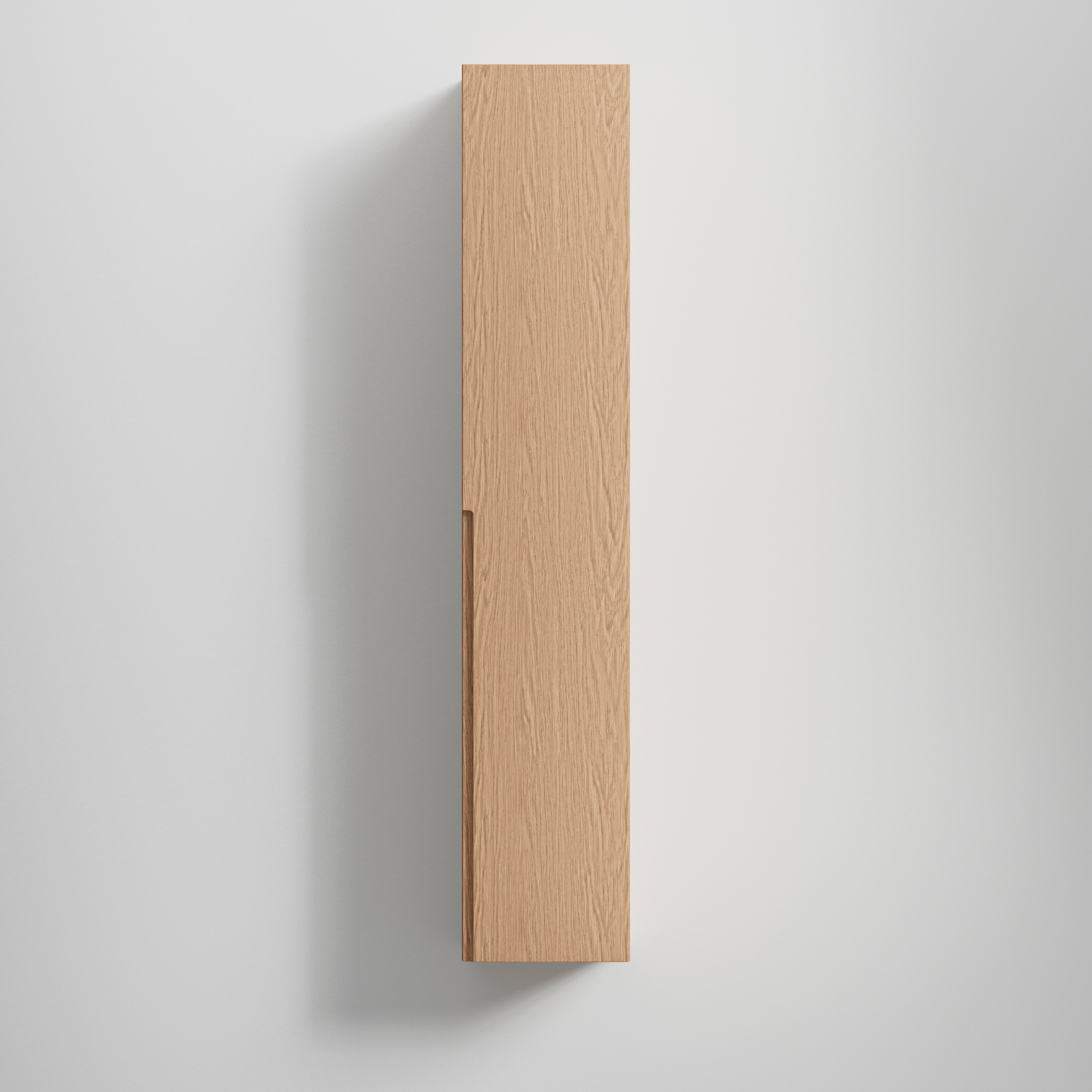 Högskåp INR Grip 30/30 är ett stilrent högskåp med slät front och en subtil grepplist, i massiv ek, som löper längs halva dörren – en genomtänkt detalj som skapar både funktion och harmoni. Placera gärna två eller flera skåp i rad och låt handtagen spegla varandra för en symmetrisk och elegant helhet. På så vis kan du skapa en hel garderobsvägg med smart och stilren förvaring.
