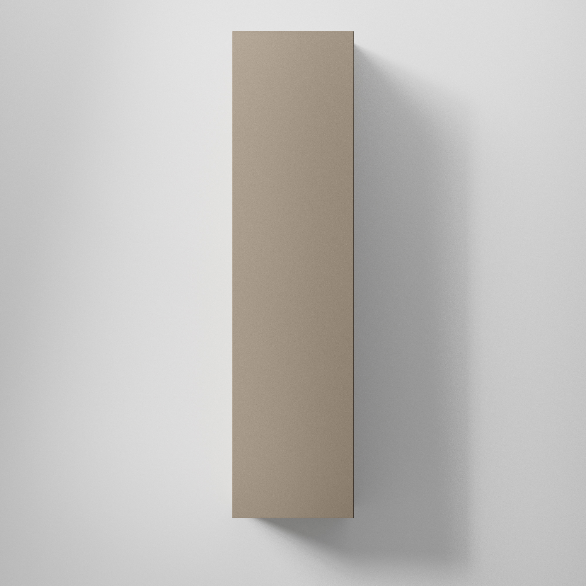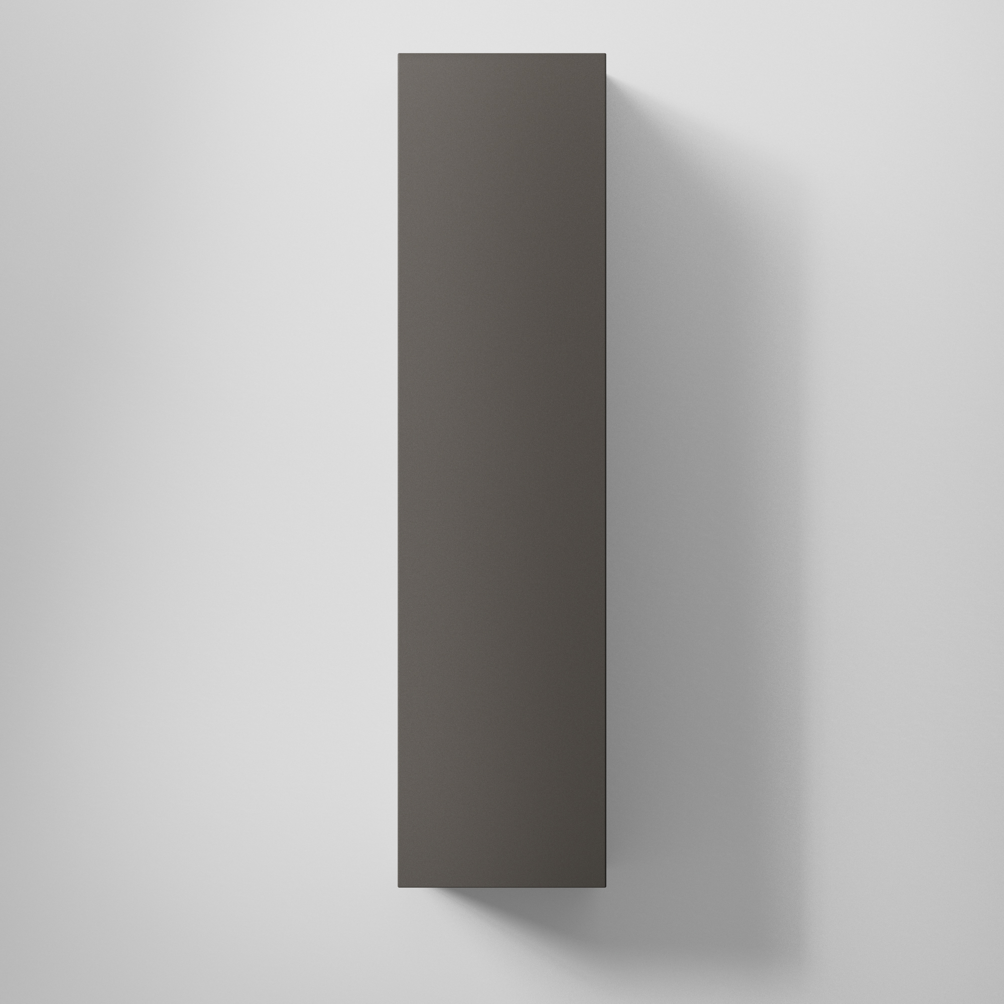 Skåpet har två lådor i matt svartlackerad aluminium, ett fast hyllplan i trä och fyra justerbara hyllplan i 6 mm härdat glas, vilket ger dig både överblick och flexibilitet i din förvaring. Högskåpet finns i flera färger och fanér och har en slät lucka som smidigt matchar INRs olika badrumsmöbler.