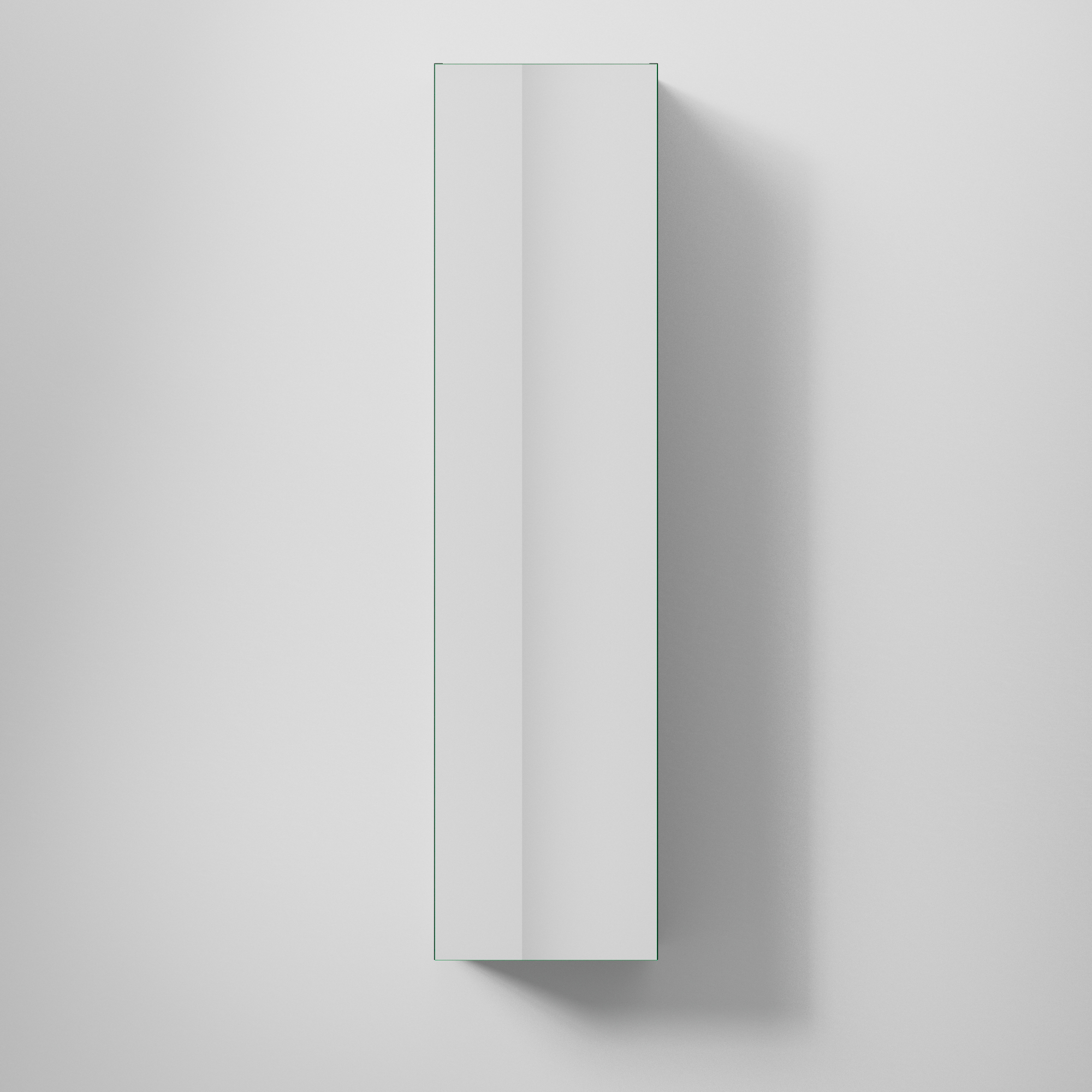 Skåpet finns med sidor i fanér eller i valfri NCS-färg, så att du kan anpassa det efter din inredning. Med sitt grunda djup på 30 cm fungerar det lika bra i små som stora badrum, och tack vare push-open och ett stilrent grepp i aluminium kan flera skåp placeras intill varandra för en enhetlig och harmonisk lösning. Invändigt är skåpet utrustat med ett fast hyllplan i trä och fyra justerbara hyllplan i 6 mm härdat säkerhetsglas, vilket ger flexibel och organiserad förvaring.