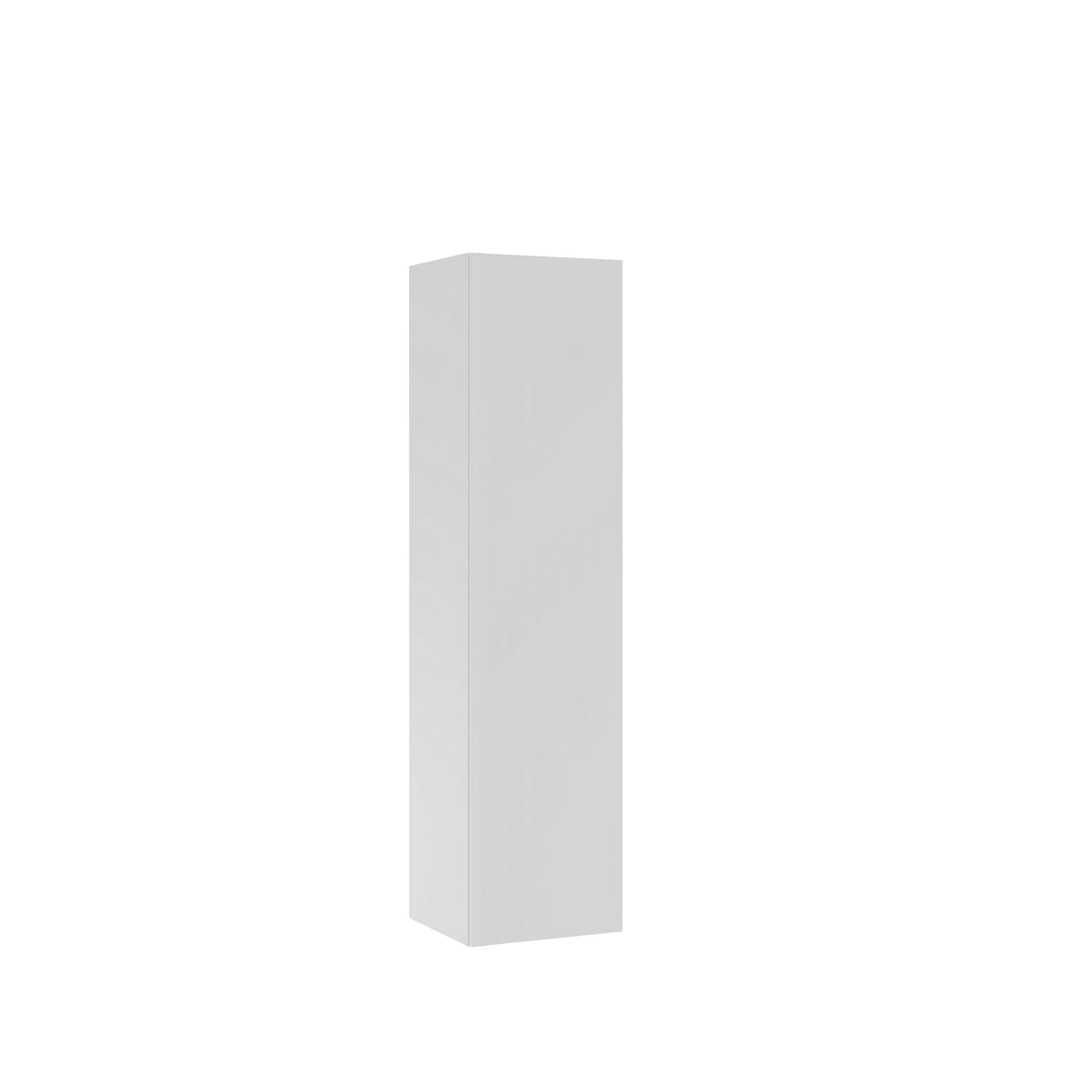 Högskåp Temal är ett rymligt städskåp med lucka, en fast hylla och en smal sektion för strykbräda. Temals förvaringsskåp som levereras med stomme och luckor/fronter. Möbeln kombinerar modern design med praktisk funktionalitet, vilket skapar en stilren och tidlös lösning för badrummet.