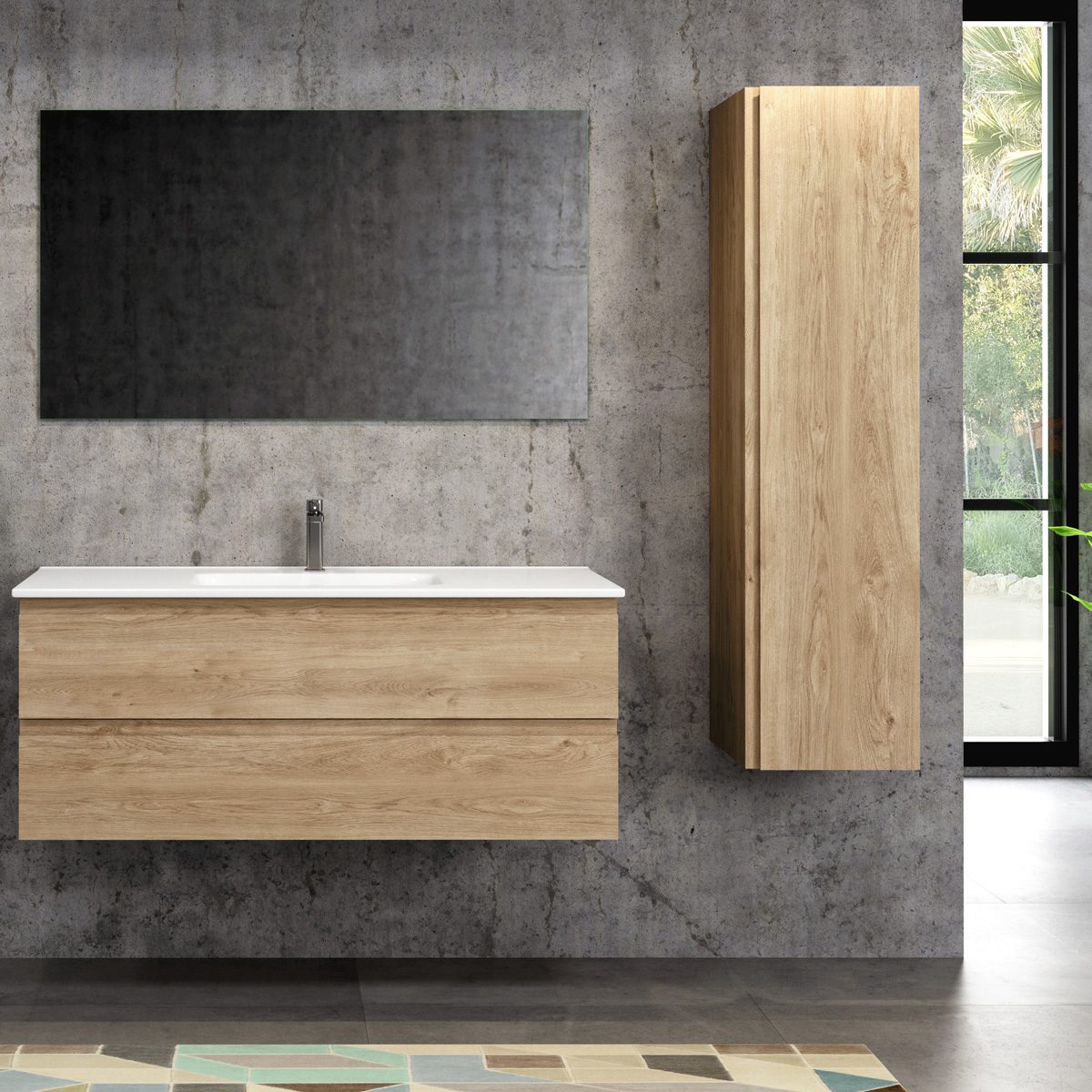Tenfors Norrvik finns i flera utföranden: Ek, Valnöt, Grå Furu och vitt. Träimitationen är autentisk och bidrar till en varm, naturlig känsla, medan den vita varianten erbjuder ett minimalistiskt och fräscht intryck. Ytorna i laminerad MDF är hållbara och fuktresistenta, vilket gör dem särskilt lämpade för badrumsmiljöer.