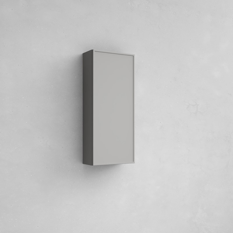 Väggskåp Flex Vogue från Noro är ett stilrent badrumsskåp med en mjukstängande dörr som kan monteras till höger eller vänster. Invändigt har väggskåpet två glashyllor som är justerbara i höjdled. Skåpet levereras monterat och det har ett integrerat handtag nedtill.