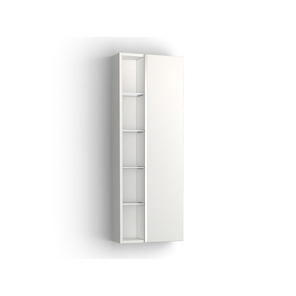 Väggskåp Vedum Spegel 400 är ett elegant väggskåp i stilrent utförande. Det har en vit stomme med en dubbelsidig spegellucka. Skåpet har en dold och en öppen förvaring. Den öppna förvaringen består av 4 fasta glashyllor och den dolda har 3 flyttbara glashyllor. Luckan har pushöppning och levereras monterat.