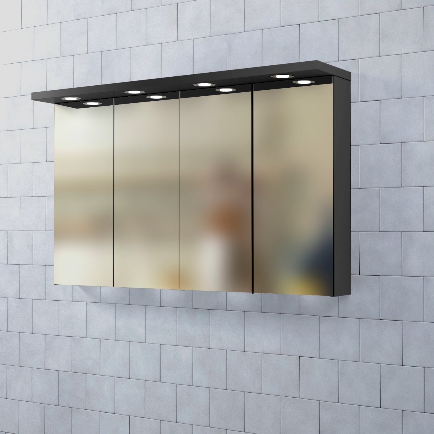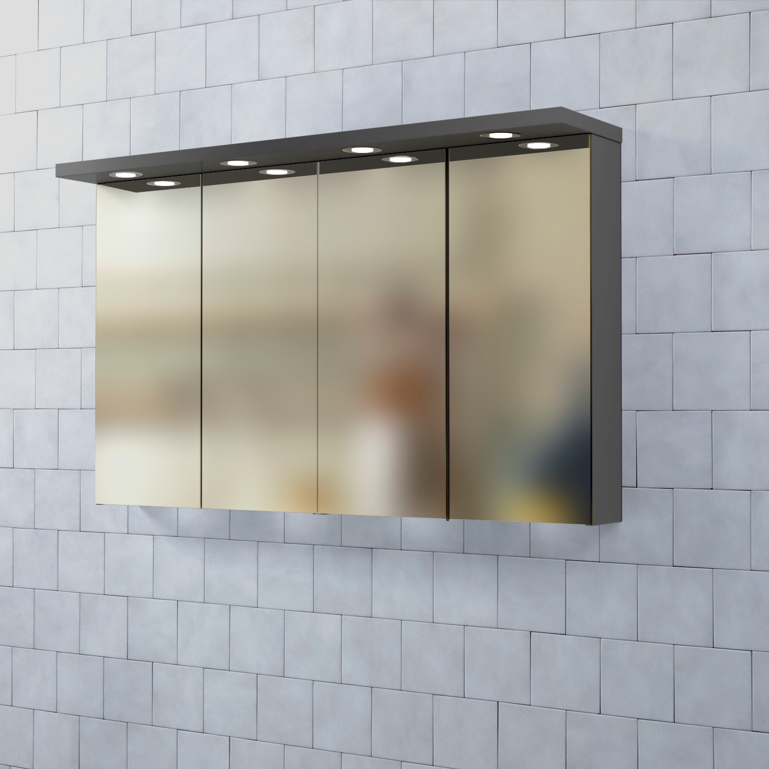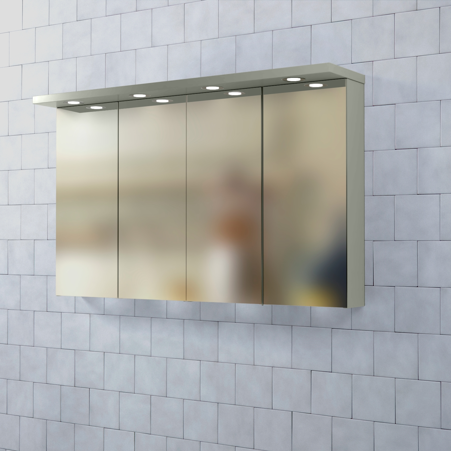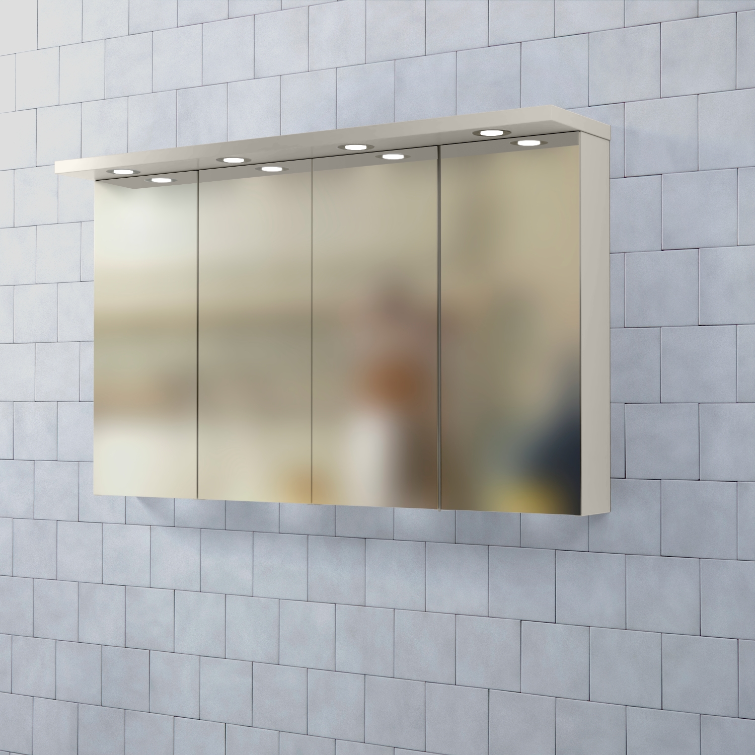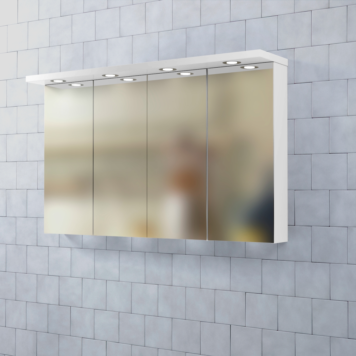 Spegelskåp Björbo Badrum Mejda 1200 är ett stilrent spegelskåp med spegelluckor. Det har infälld LED-belysning i överkant och tvättställsbelysning i underkant. Spegelskåpet har ett eluttag (230V) inne i spegelskåpet som gör att du kan ladda eltandborste eller rakapparat. Invändigt har skåpet glashyllor.