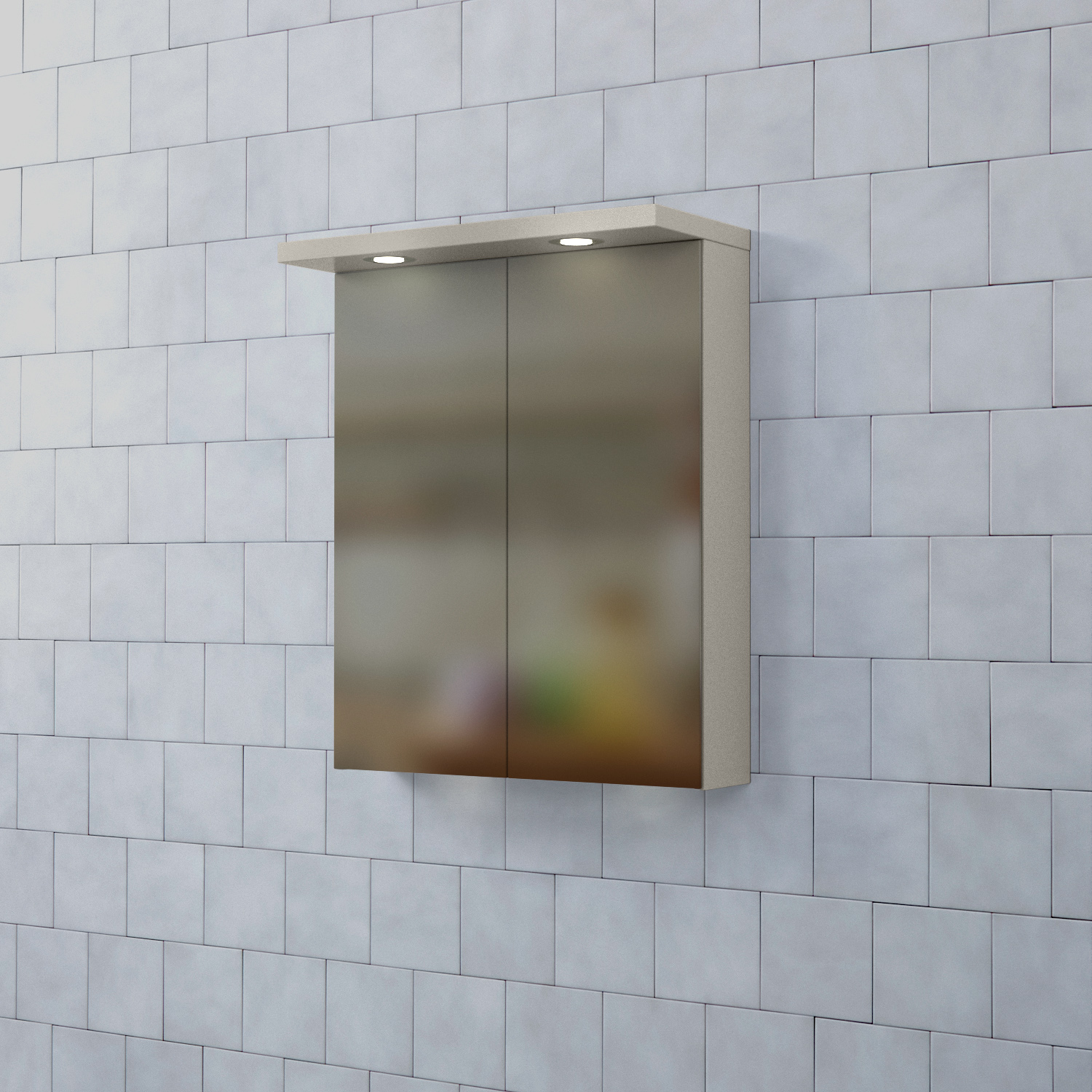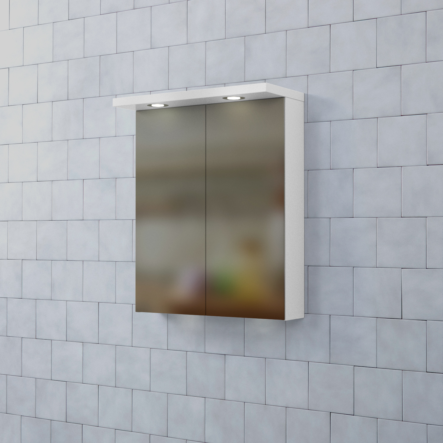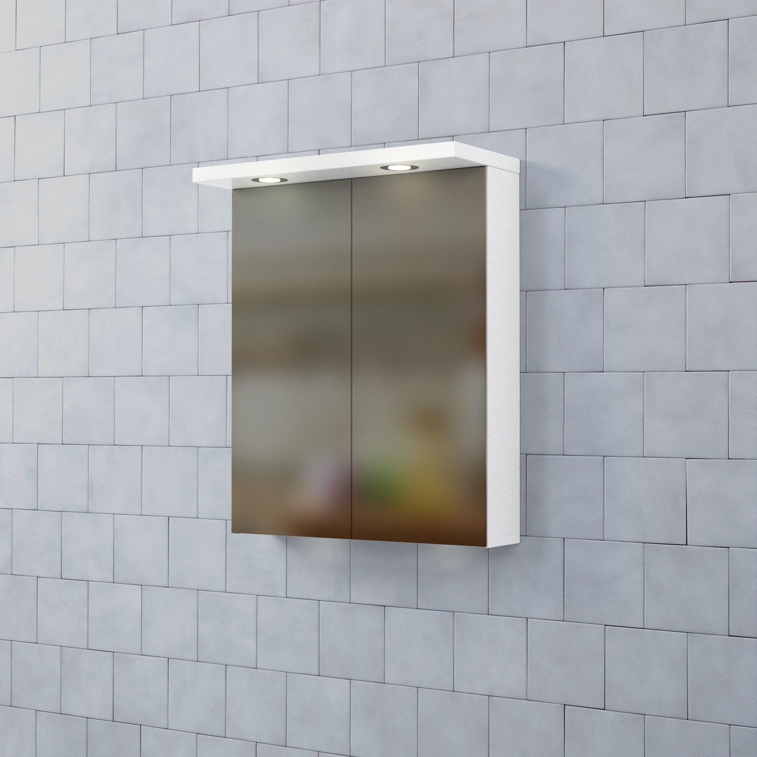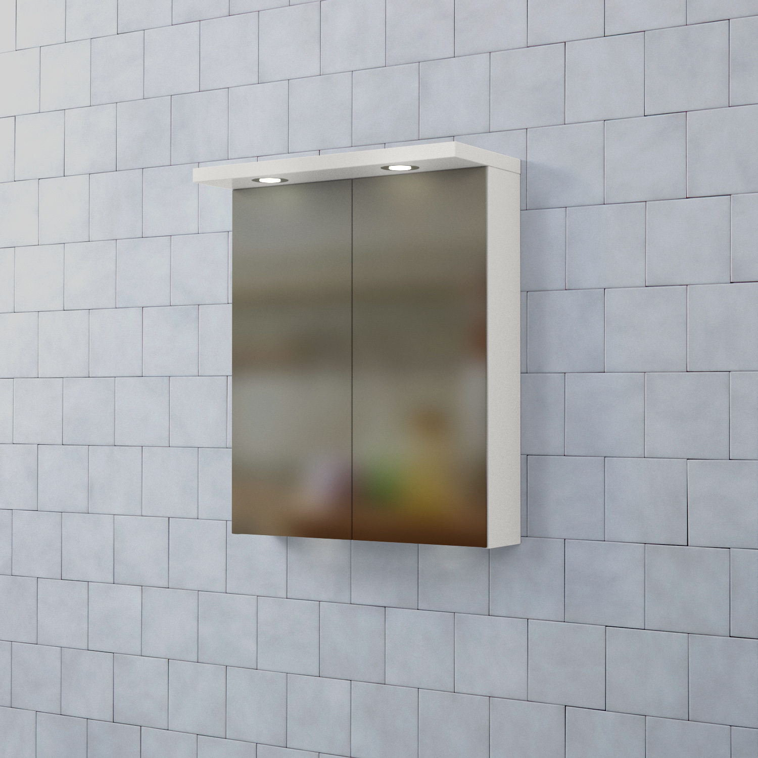 Spegelskåp Björbo Badrum Mejda är ett stilrent spegelskåp med spegelluckor. Det har infälld LED-belysning i överkant och tvättställsbelysning i underkant. Spegelskåpet har ett eluttag (230V) inne i spegelskåpet som gör att du kan ladda eltandborste eller rakapparat. Invändigt har skåpet glashyllor.