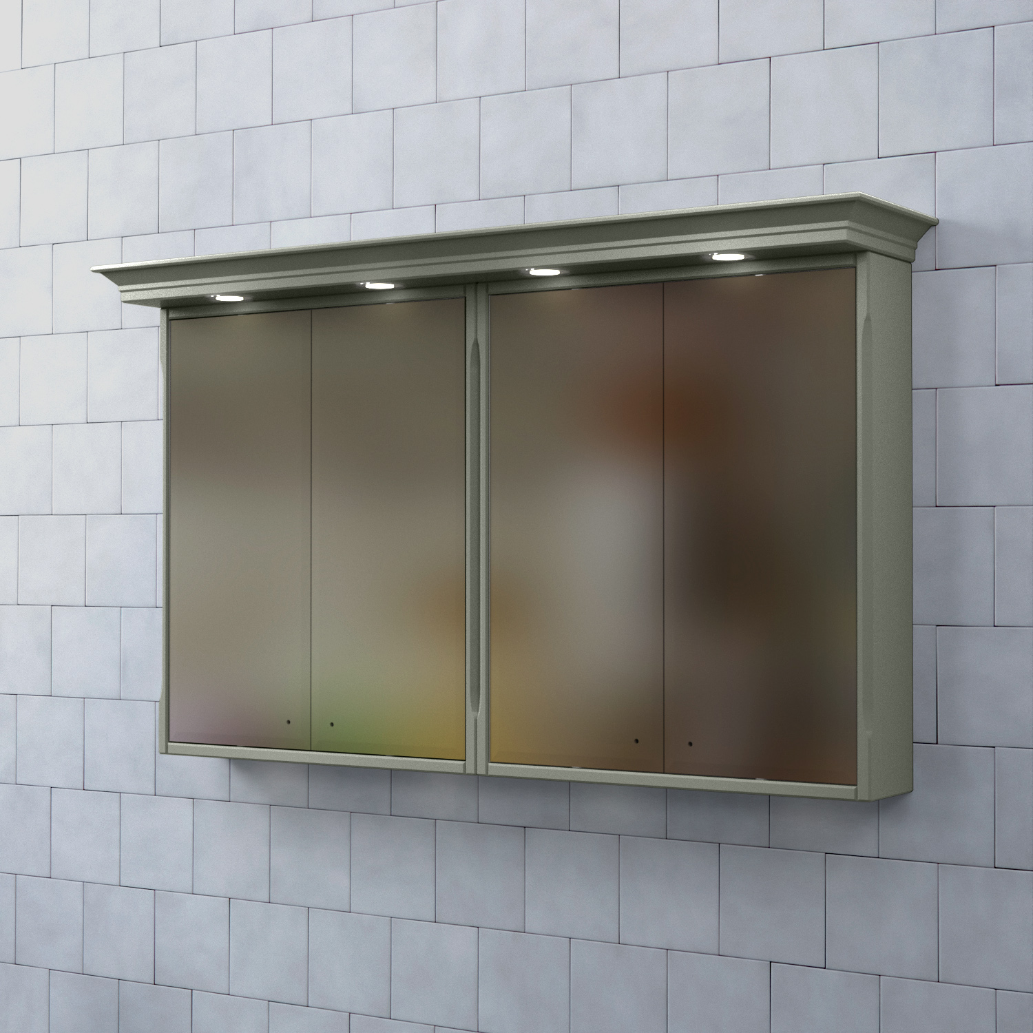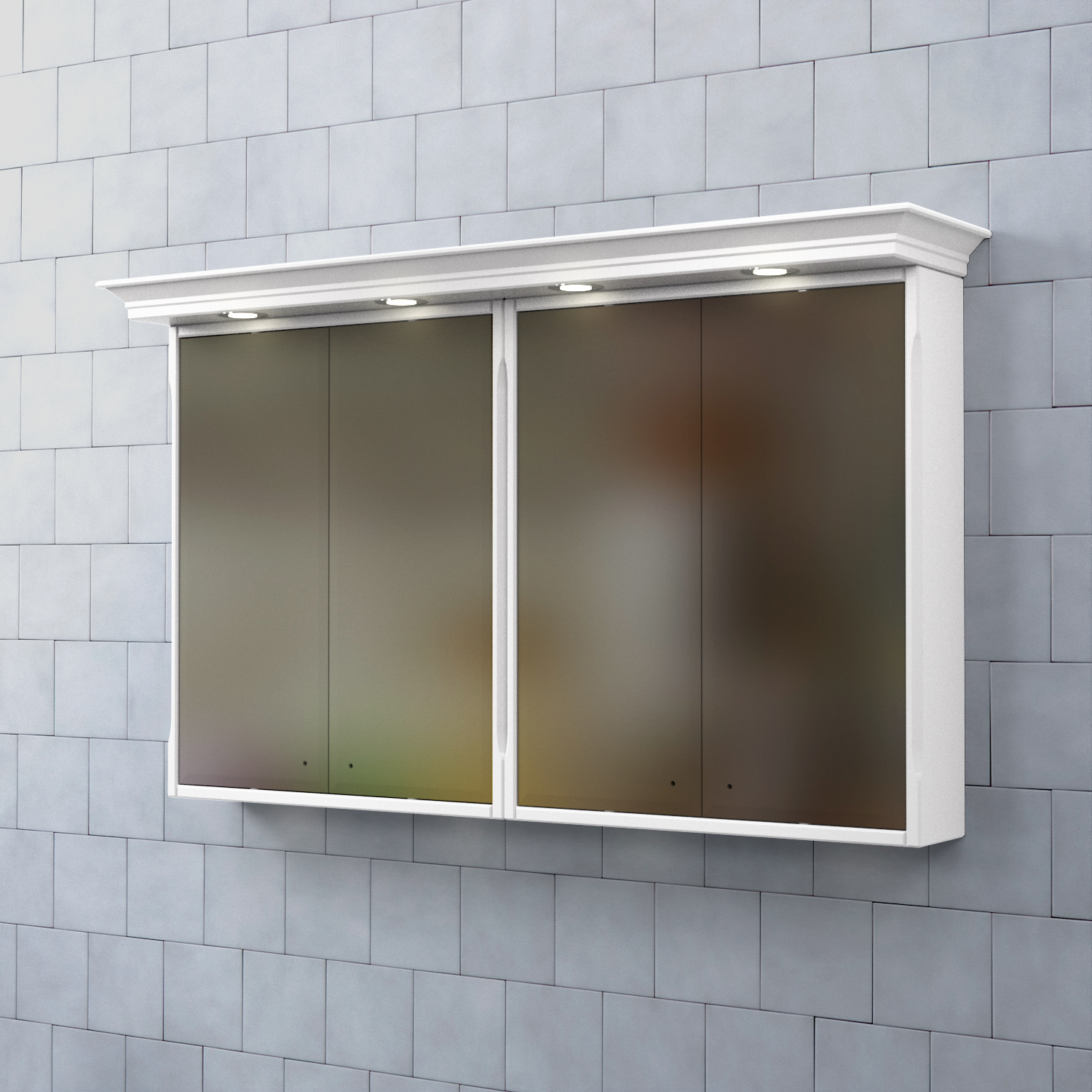 Spegelns stomme är tillverkad av målad MDF med spegelglas. Komplettera spegelskåpet med knoppar och dimmerfunktion till LED-belysningen.