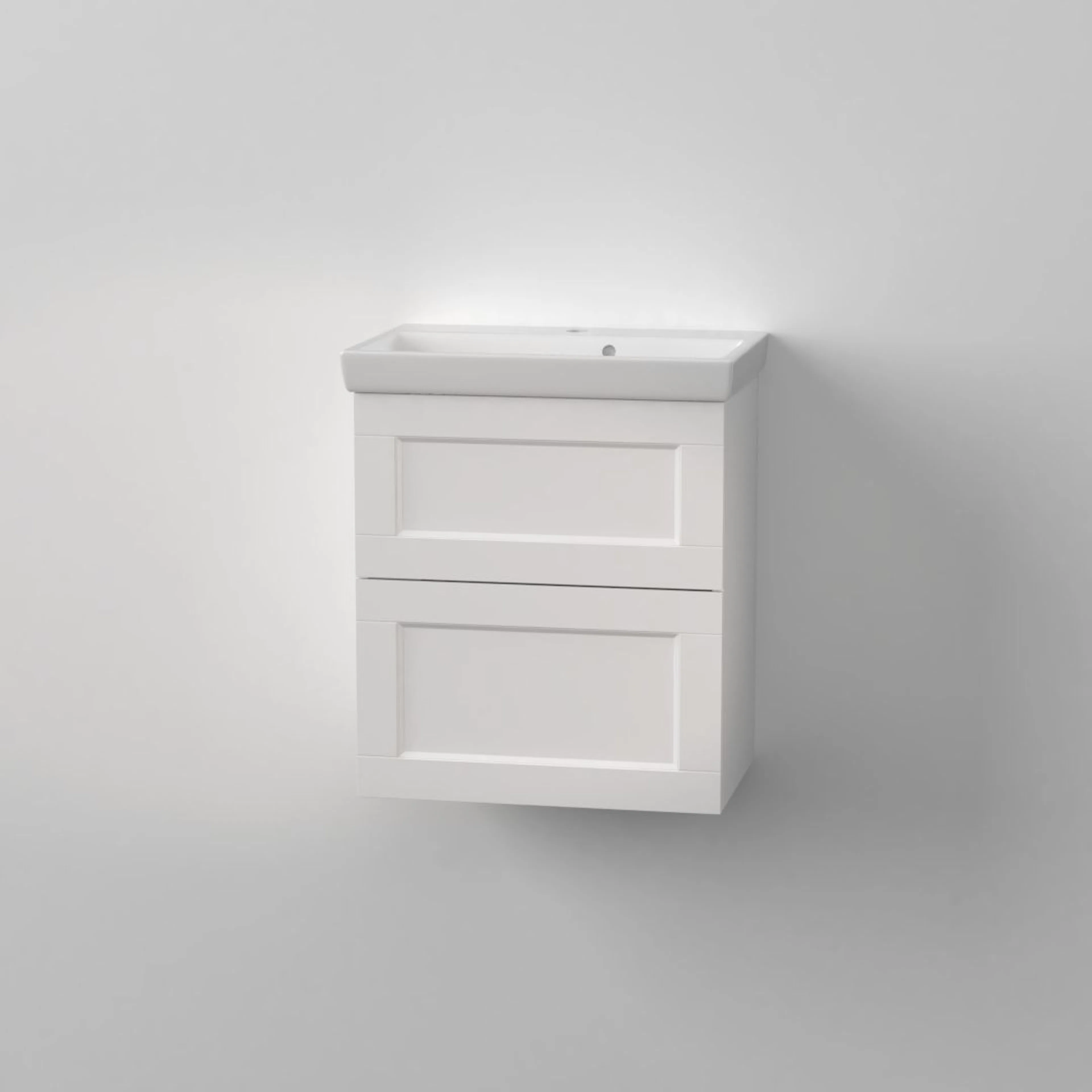 Tvättställskåp DuoBad Gripen Classic är ett stilrent tvättställskåp i avskalad skandinavisk anda med klassisk front. Lådorna har fullutdrag och är mjukstängande och lätta att justera. Gjord på fukttrög MDF.