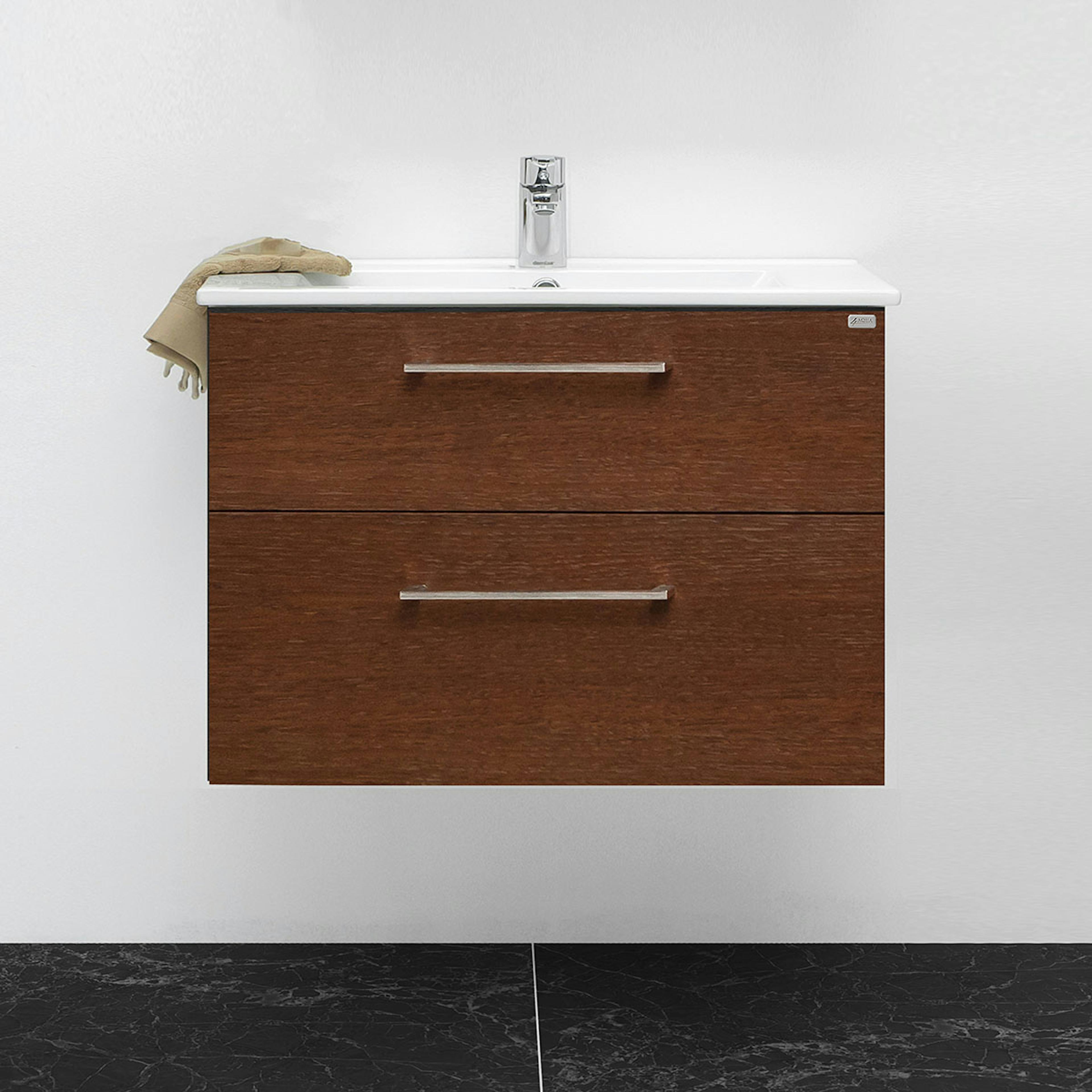 Tvättställsskåp 4AQUA Slim H Med 2 LådorMörkbrun Ek, 790 mm