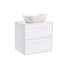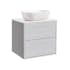 Tvättställsskåp Alterna Gabriella med bänkskiva och rektangulärt ovanpåliggande tvättställ. Bänkskivan är gjord av kvartskomposit och tvättställ i porslin, 455x325x135 mm. Underskåpen har mjukstängande lådor som ger en lyxig och tyst användning samtidigt som de ökar möbelns livslängd.