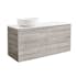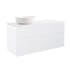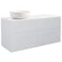 Tvättställsskåp Alterna Isella levereras med bänkskiva och ovanpåliggande tvättställ. Bänkskivan är gjord av kvartskomposit och tvättställ i porslin, dia 415 mm. Underskåpen har mjukstängande lådor. Handtag beställes separat.