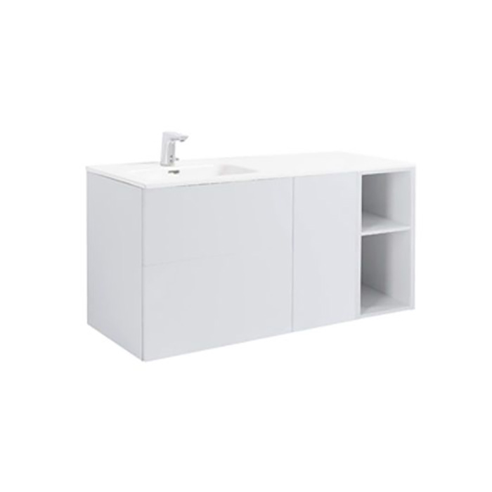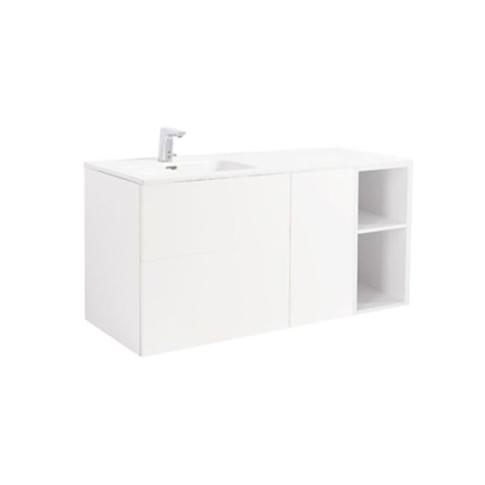 Tvättställsskåp Alterna Isella med Öppen Förvaring är ett möbelpaket bestående av underskåp, tvättkorgsskåp, tvättkorg samt två öppna fack. Perfekt för att gömma undan både smutstvätt och annat som man inte vill ha liggande framme. Det snygga tvättstället går att få med bassängen till höger eller vänster. Isellas rena, raka linjer ger ett enkelt, jordnära och ungdomligt intryck.