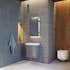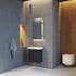 Tvättställsskåpets lucka är mjukstängande och handtaget är gjort i aluminium. Luckan är mycket slistark och motståndskraftig mot fukt tack vare att den är 3D-termolaminerad, idealiskt i badrumsmiljö.