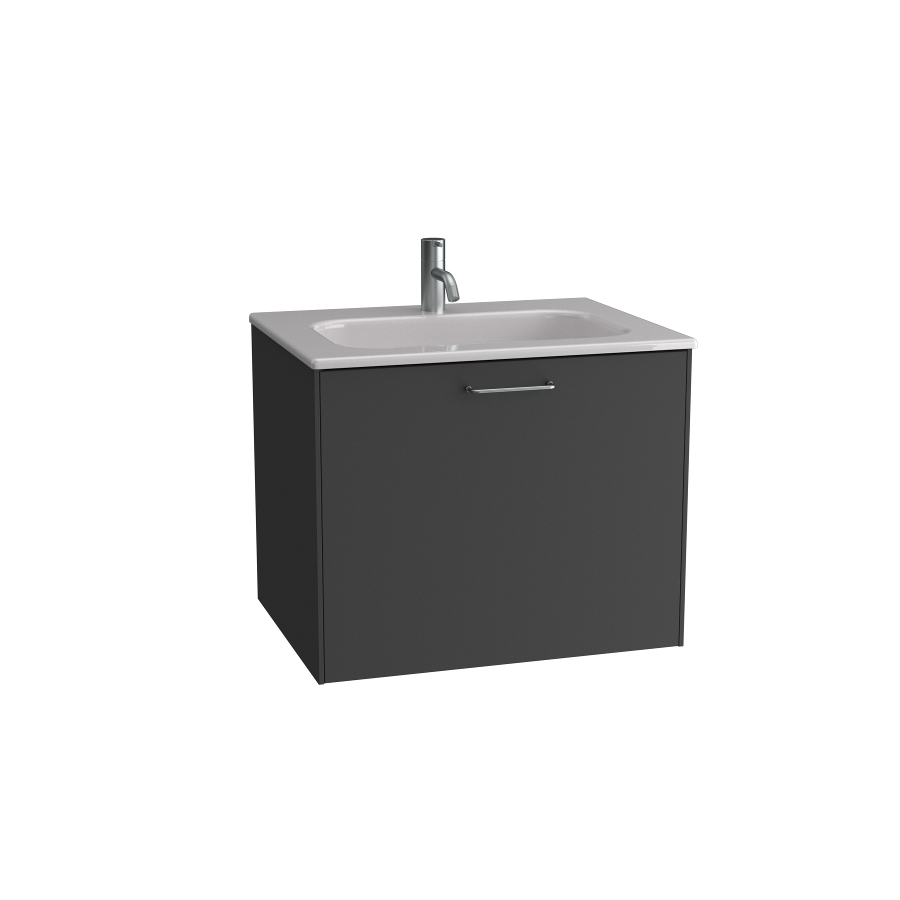 Tvättställsskåp Ballingslöv KH60 Lessmore är ett stilrent tvättställsskåp med hel front. Tvättställsskåpet har en stor låda och en liten mindre innanförliggande låda för smart förvaring.