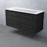 Tvättställsskåp Björbo Badrum Mejda Hög är en stilren kommod med en inramande stomme som levereras utan tvättställ och blandare. Detta skåp har djupa och mycket stabila fullutdragslådor i svartbetsat trä med mjukstängning och självindrag. Skåpet levereras med vattenlås, lådindelare i svartbetsat trä och lådmattor.