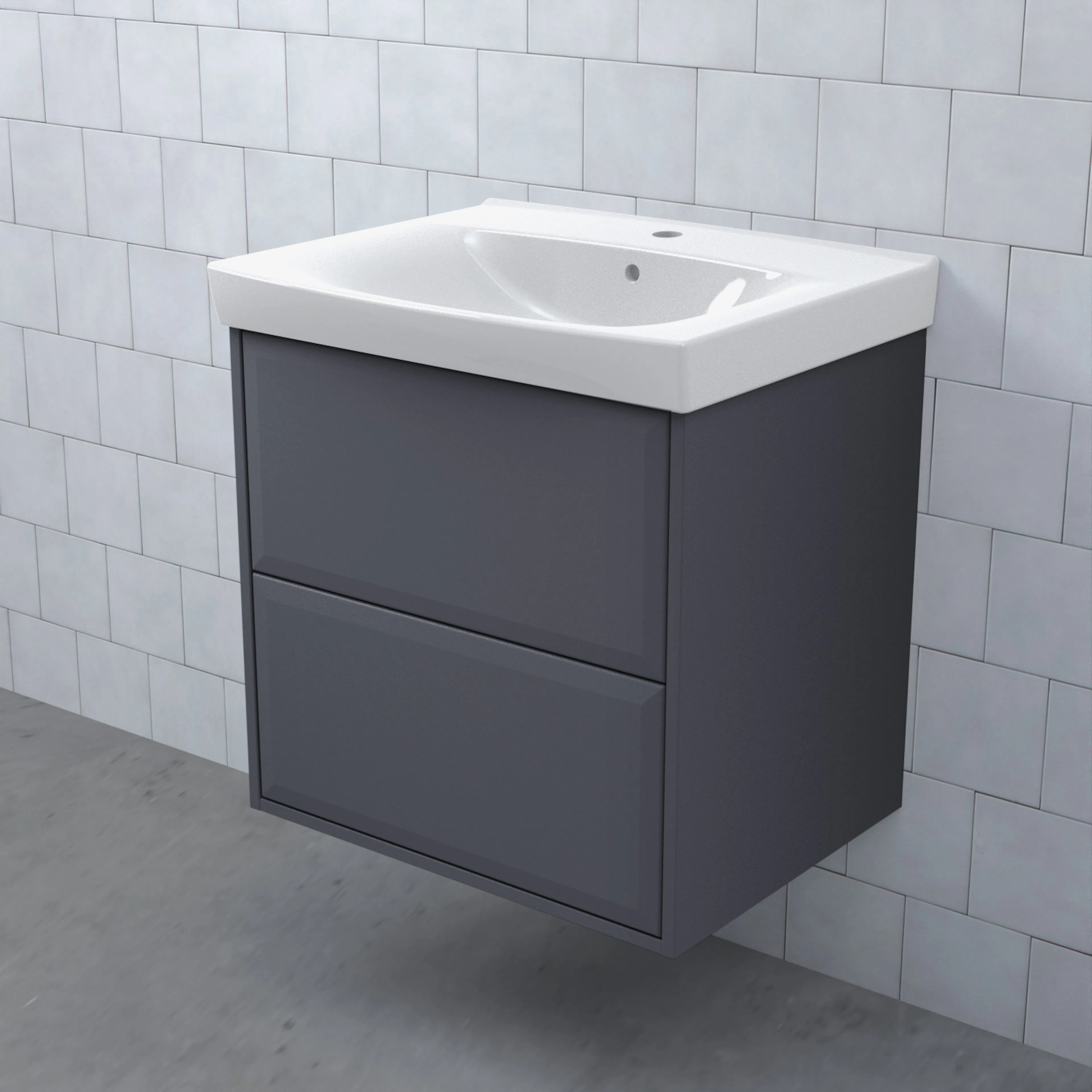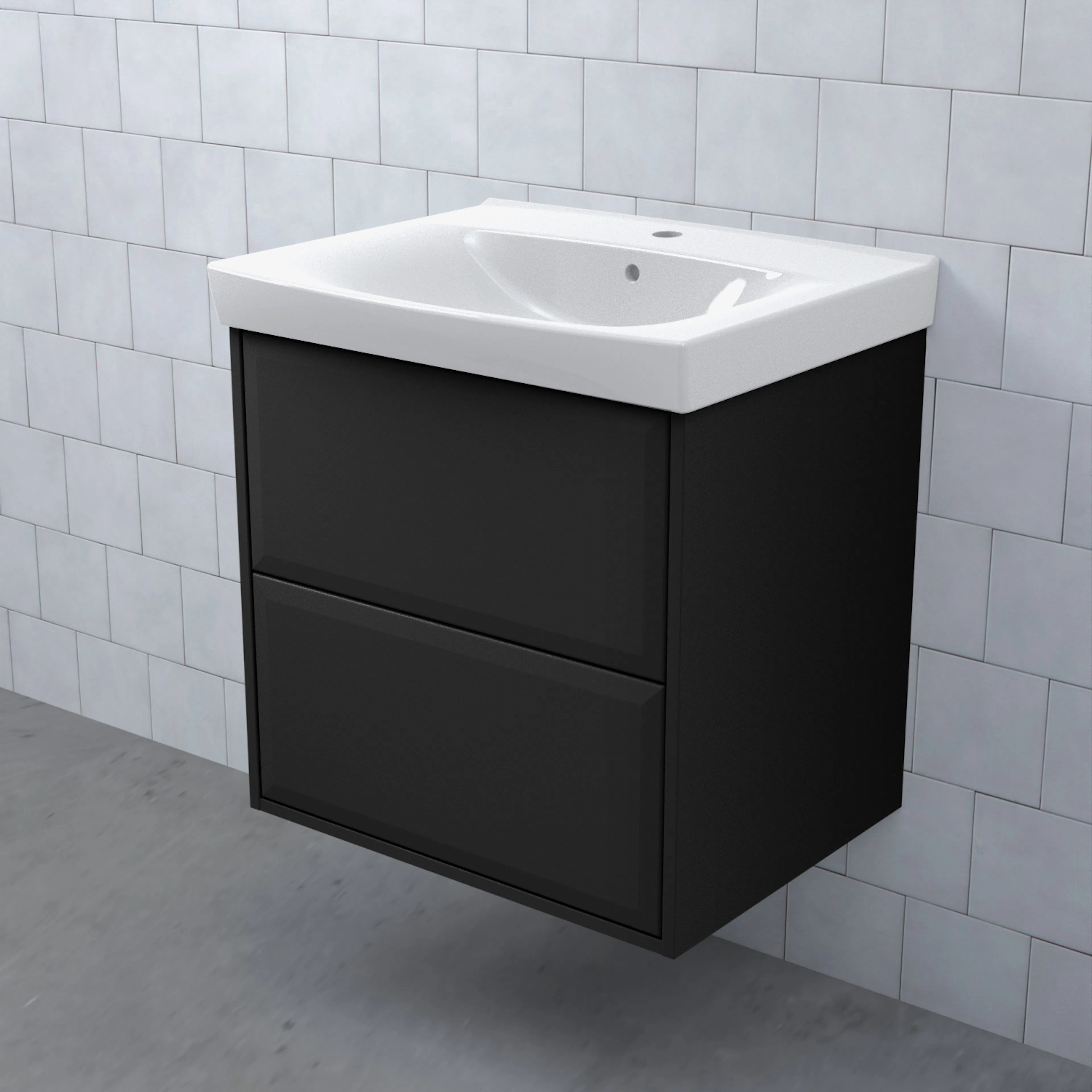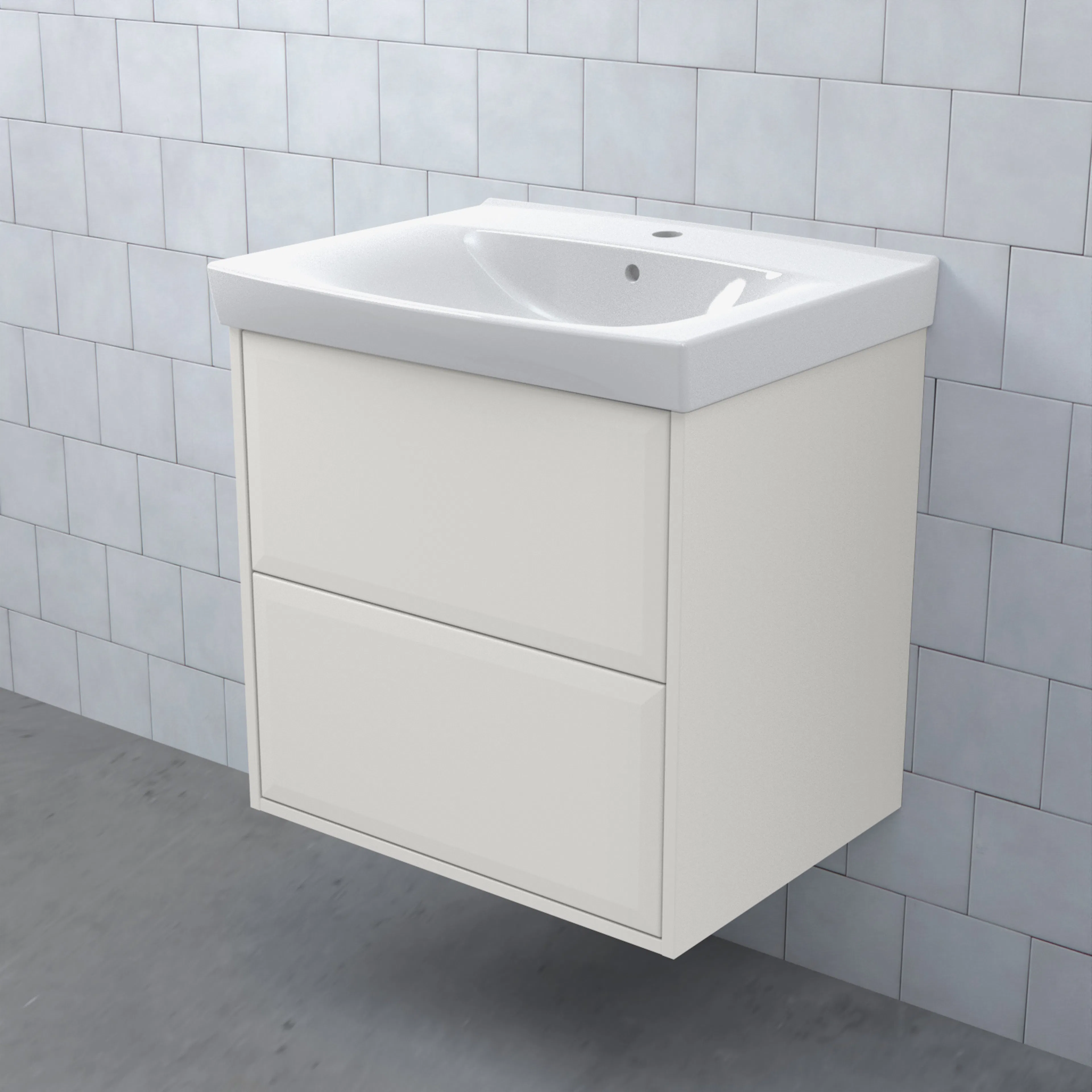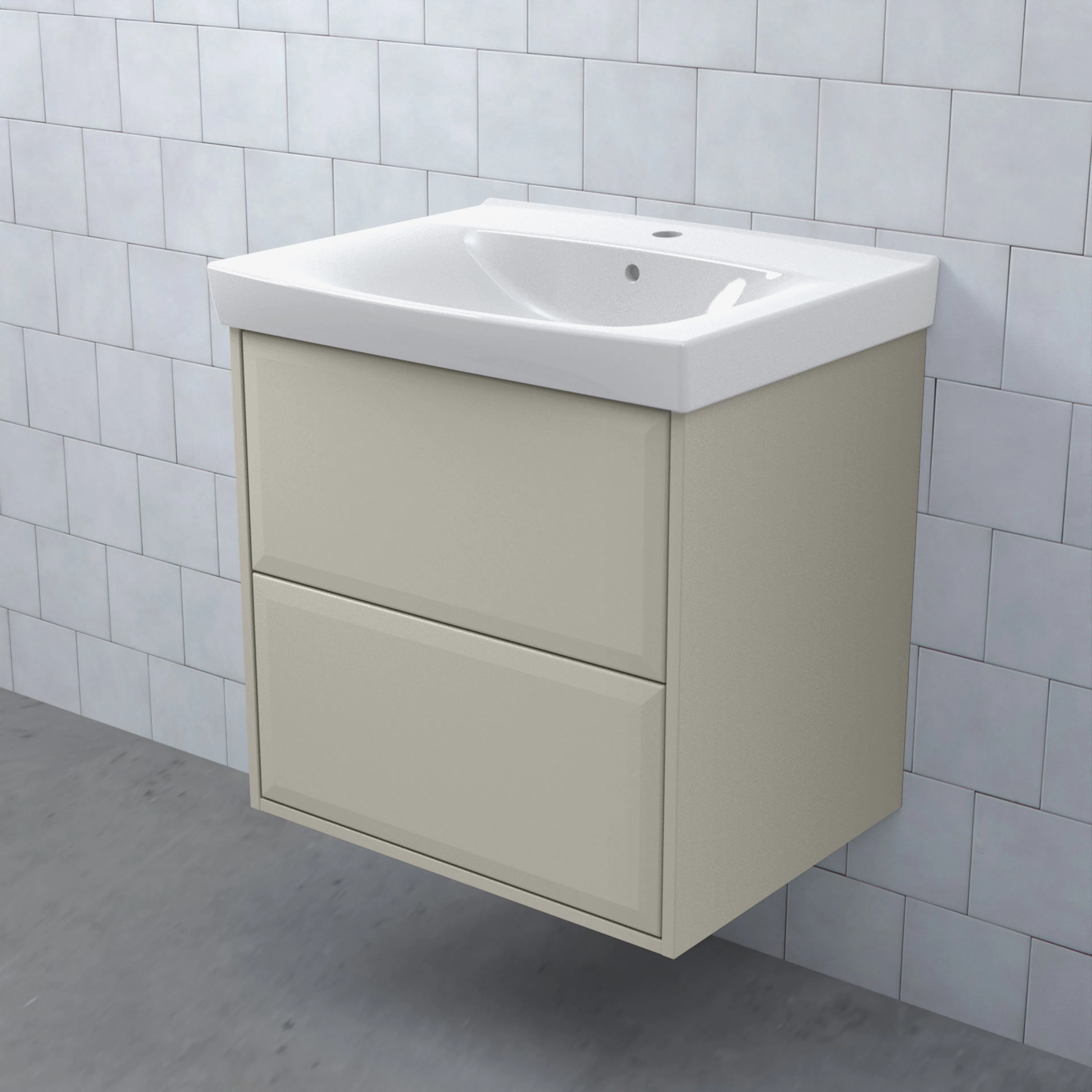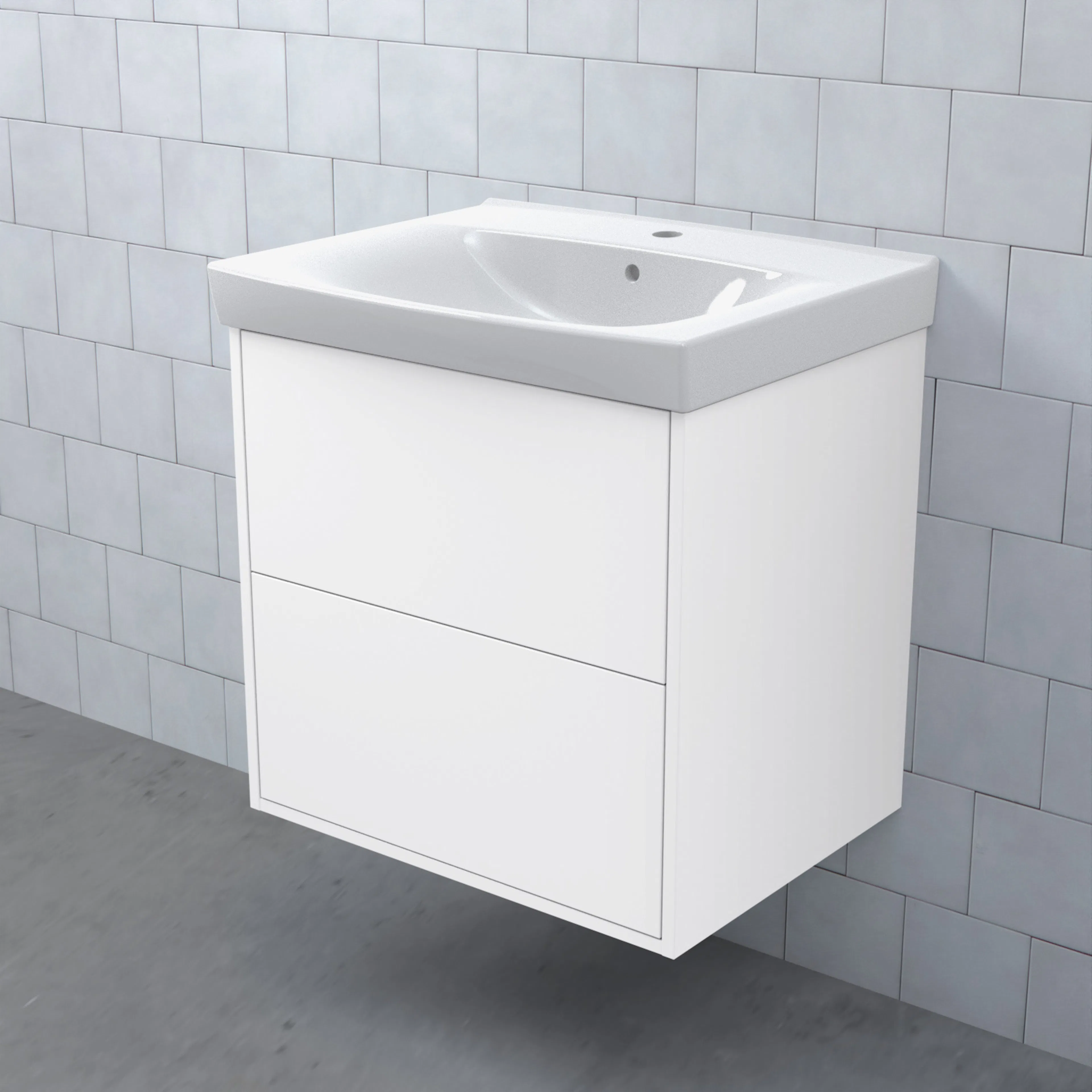 Stommen är tillverkad av fukttrögt skivmaterial och skåpet levereras färdigmonterat och transportförpackat från fabrik. Komplettera din möbel med tvättställ, blandare, handtag, eluttag, extra lådindelare och ben. Du kan välja mellan olika heltäckande tvättställ, ovanpåliggande tvättställ med medföljande bänkskiva eller en bänkskiva med ett underlimmat porslinstvättställ, allt efter eget tycke och smak.