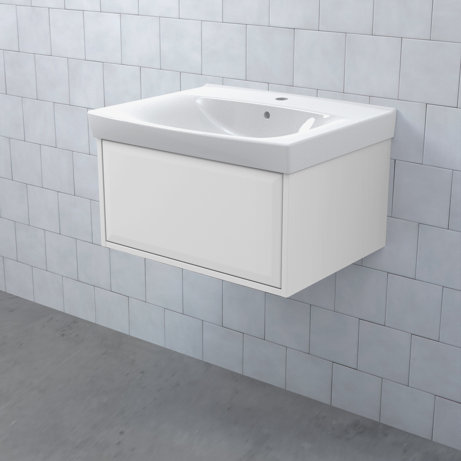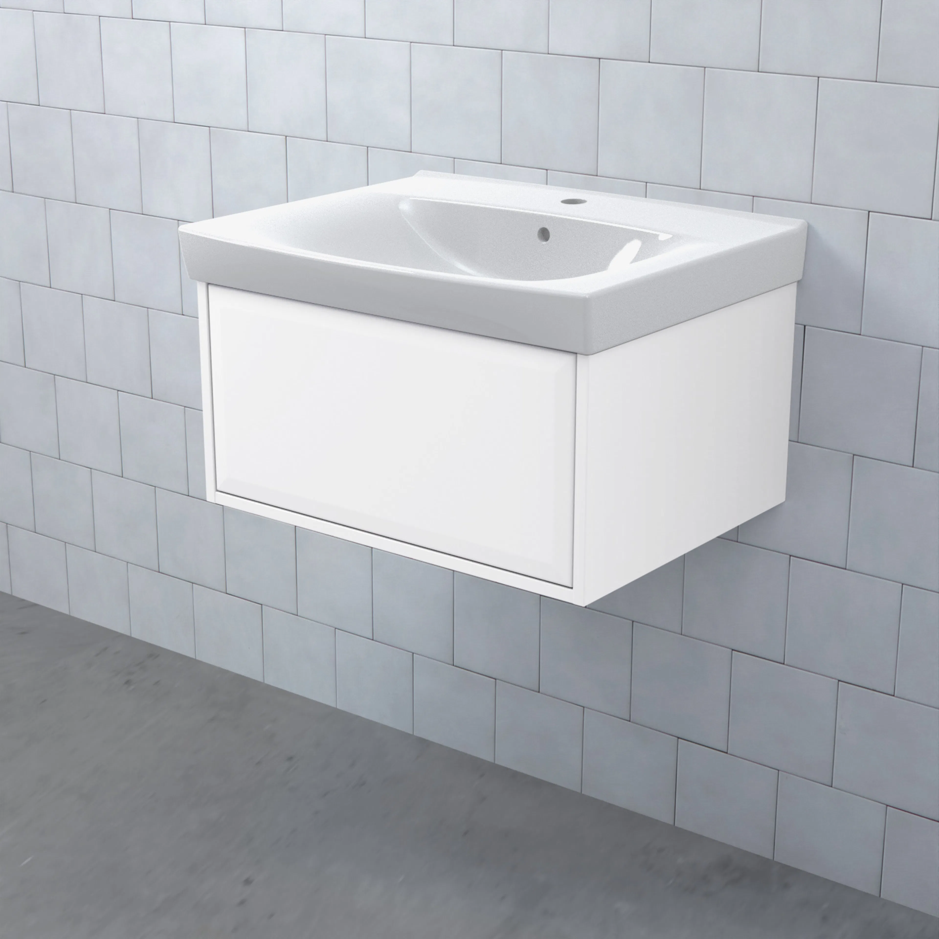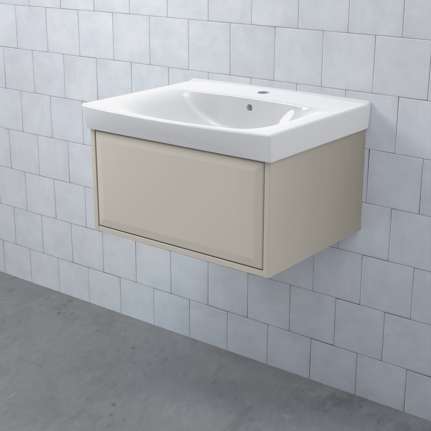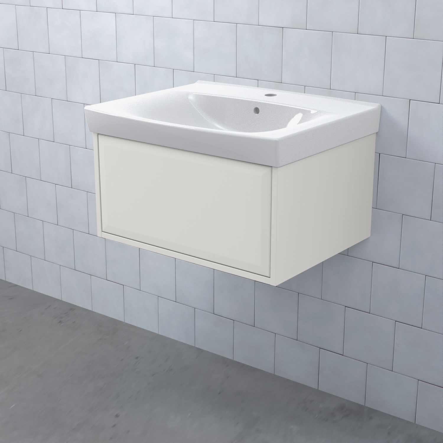 Stommen är tillverkad av fukttrögt skivmaterial och skåpet levereras färdigmonterat och transportförpackat från fabrik. Komplettera din möbel med tvättställ, blandare, handtag, eluttag, extra lådindelare och ben. Du kan välja mellan olika heltäckande tvättställ, ovanpåliggande tvättställ med medföljande bänkskiva eller en bänkskiva med ett underlimmat porslinstvättställ, allt efter eget tycke och smak.