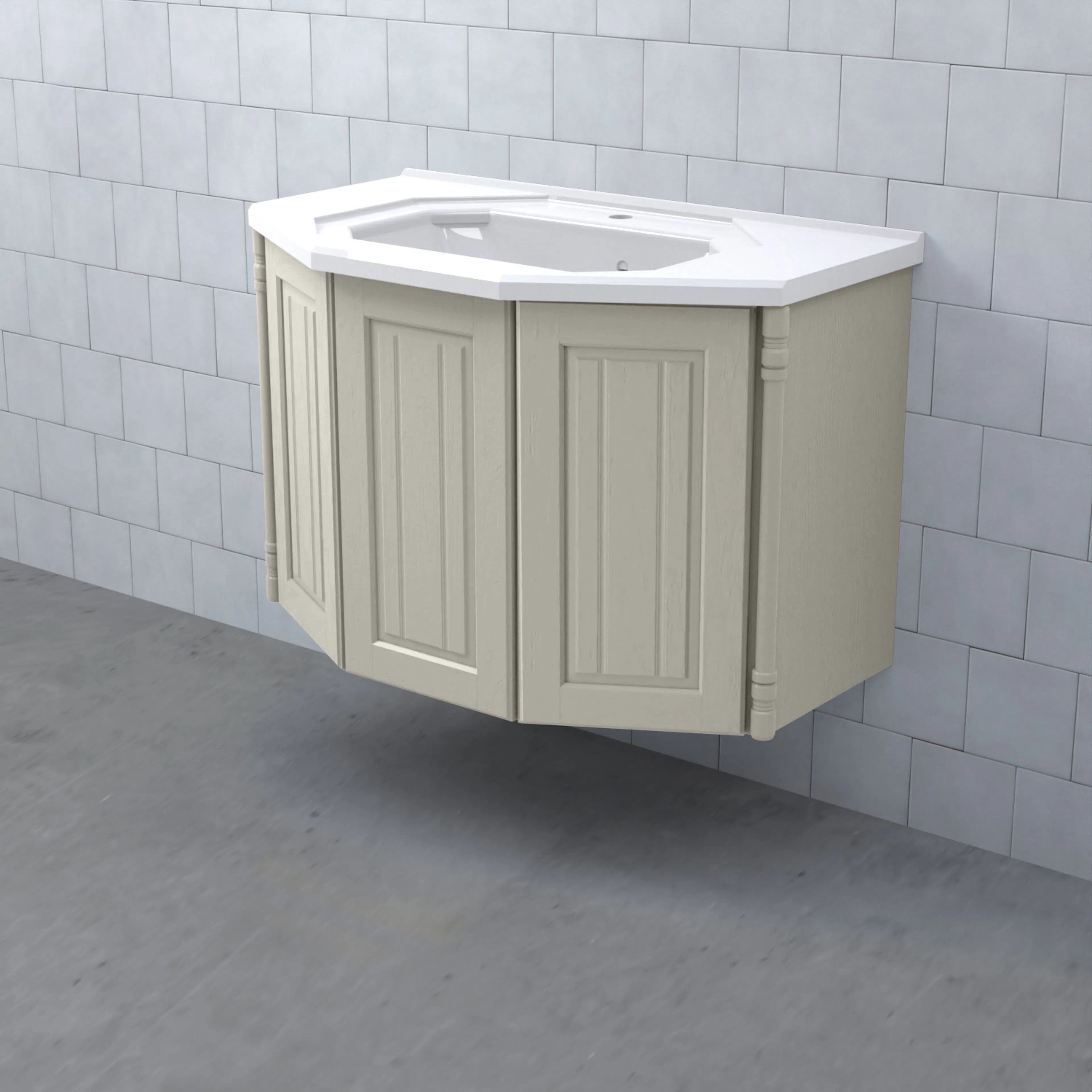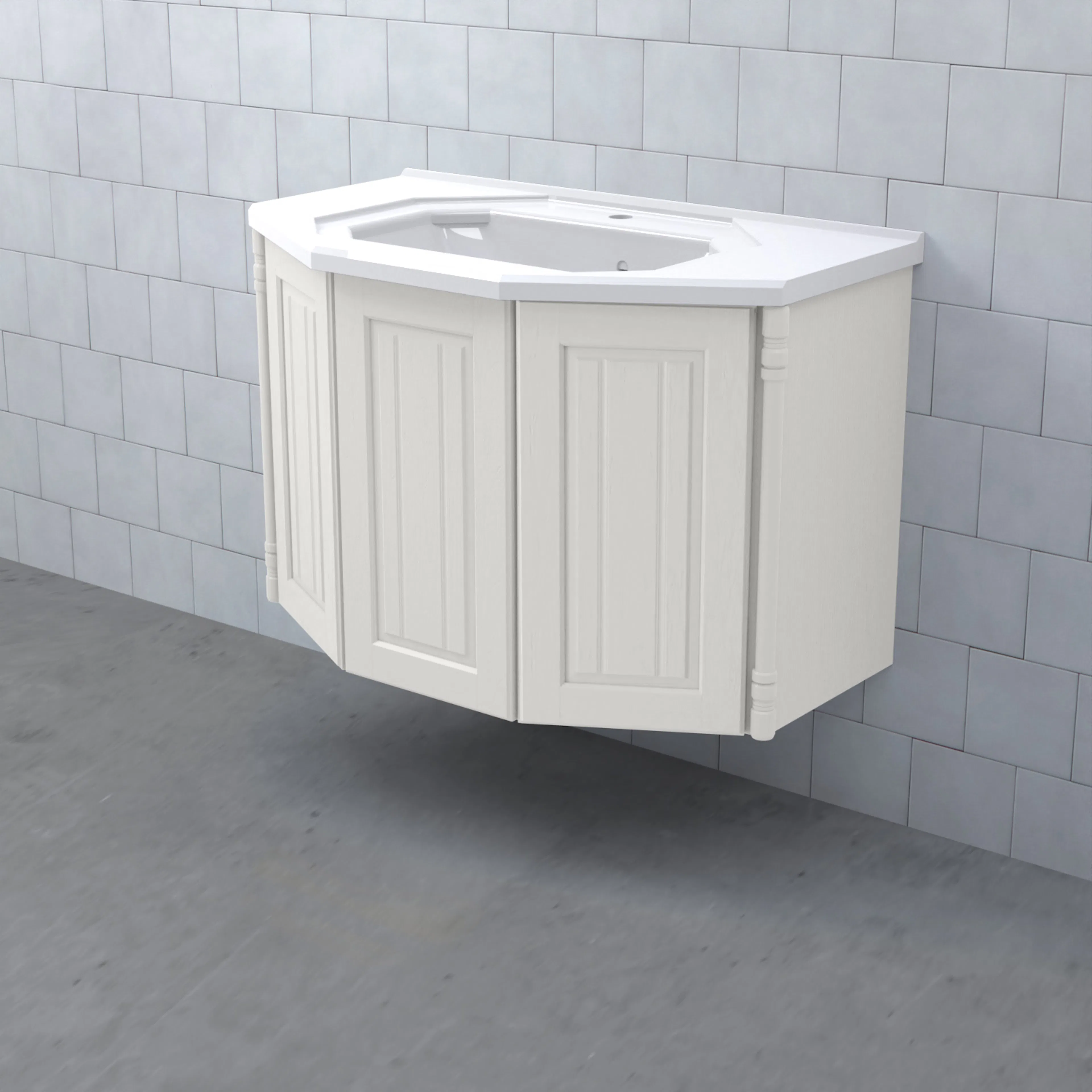 Tvättställsskåp Valhall Luckor från Björbo Badrum är ett elegant tvättställsskåp med sekelskiftesdetaljer som levereras utan tvättställ, handtag och blandare. Detta badrumsskåp har luckor gjorda av målad, präglad MDF och leverer med vattenlås, lådindelare och lådmattor. Stommen är gjord av målad MDF.