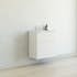 Tillsammans med skåpet ingår tvättstället Minore i solid surface, ett modernt alternativ till porslin och marmor. Mini Minore tvättstället i kompositt har en matt och silkeslen yta med ultratunn design som bidrar till ett modernt och minimalistiskt badrum. Solid surface ger möjligheten till ett lätt och luftigt uttryck med raka vinklar och minimala rundningar. Tvättstället har en tunn design med vit, matt yta som skapar en ren och stilfull känsla. Det rymliga rektangulära handfatet är lätt att rengöra och kräver minimalt underhåll.