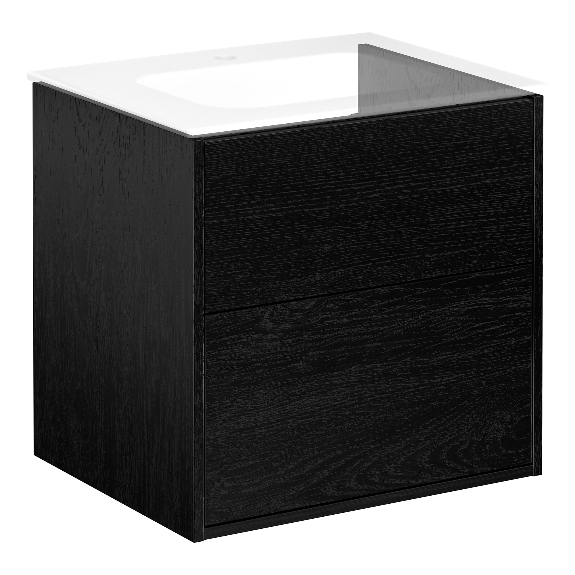 Komplettera med spegel/spegelskåp, tvättställsblandare och snygga beslag.