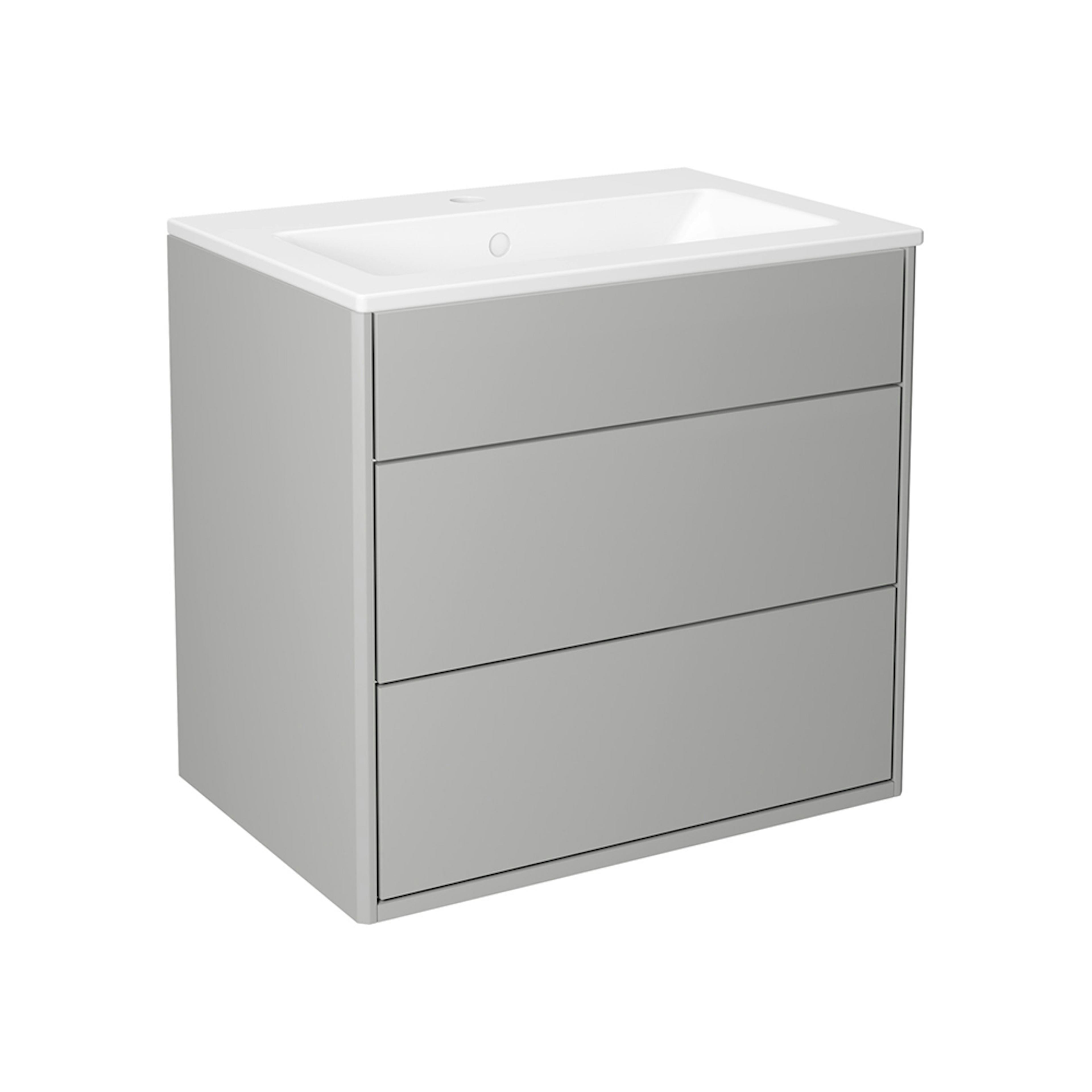 Tvättställsskåpet har plats för rördragning bakom lådorna. Skåpet är tillverkat av fukttrög MDF som är klassad för badrum och det har samma material och färg på stomme, lådfronter och lådor. Komplettera med snygga beslag, eluttag, spegelskåp/spegel och tvättställsblandare.