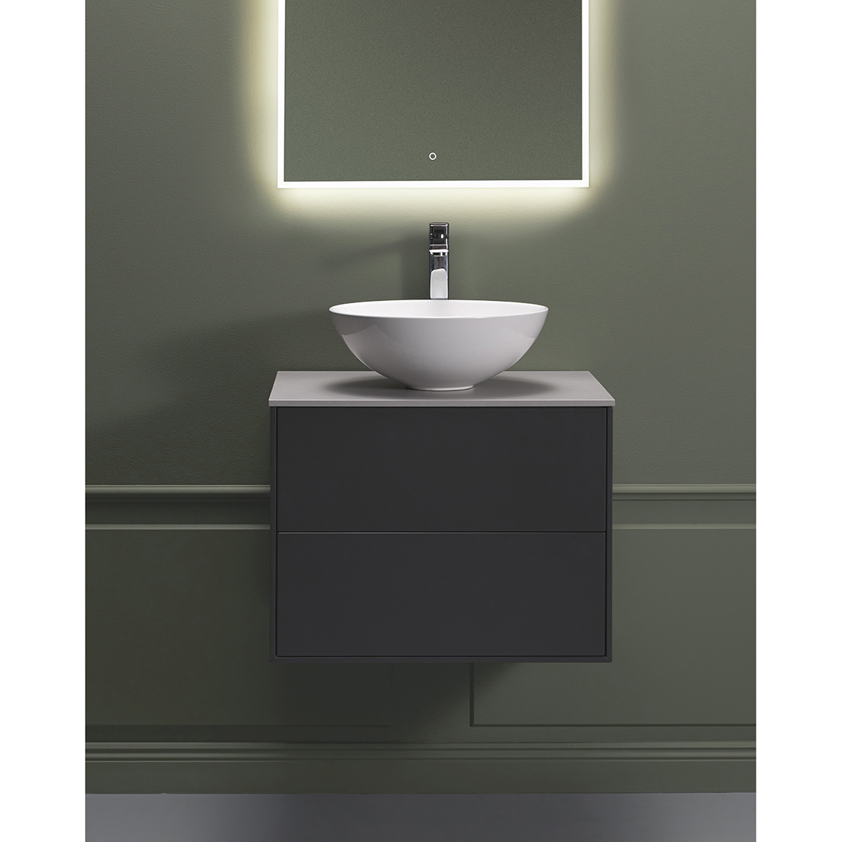 Skåpet finns i flera utföranden. Komplettera ditt tvättställsskåp med ett fristående tvättställ och bänkskiva eller ett inbyggt tvättställ, ett PUM-vattenlås och en tvättställsblandare. Lådbelysning, eluttag och handtag finns som tillbehör.