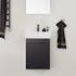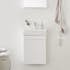 Tvättställsskåp i sammetsmatt lack i svart eller vitt med mjukstängande lucka som ger generös förvaring. Tvättställsskåpet är enkelt att installera för en person med skena på vägg.