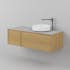 Tvättställskåp INR Air Wood 1200 är ett modernt tvättställsskåp med hel lådfront med fackindelad innerlåda och förvaring med lucka. Detaljer i massiv ek.