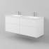Tvättställsskåp INR Grand Solid 1400 Dubbel är ett modernt tvättställsskåp i stilren design. Detta tvättställsskåp har fyra lådor med mjukstängning och fullutdrag och det medföljer dessutom fyra Organizers som är lådinredning i exklusiv vitpigmenterad ek och svartborstad aluminium för att du enklare ska kunna organisera dina prylar (Organizern är 10 cm bred och lika djup som möbeln). Lådorna har grå antiglidmattor. Skåpet levereras färdigmonterat med 15 års garanti och har en ytbehandling, TX Top Extreme, som är en yta speciellt utformad för badrumsmöbler eftersom den ger en mycket större fukttålighet och stöttålighet. Kommoden kommer utan tvättställ, grepplist och blandare.