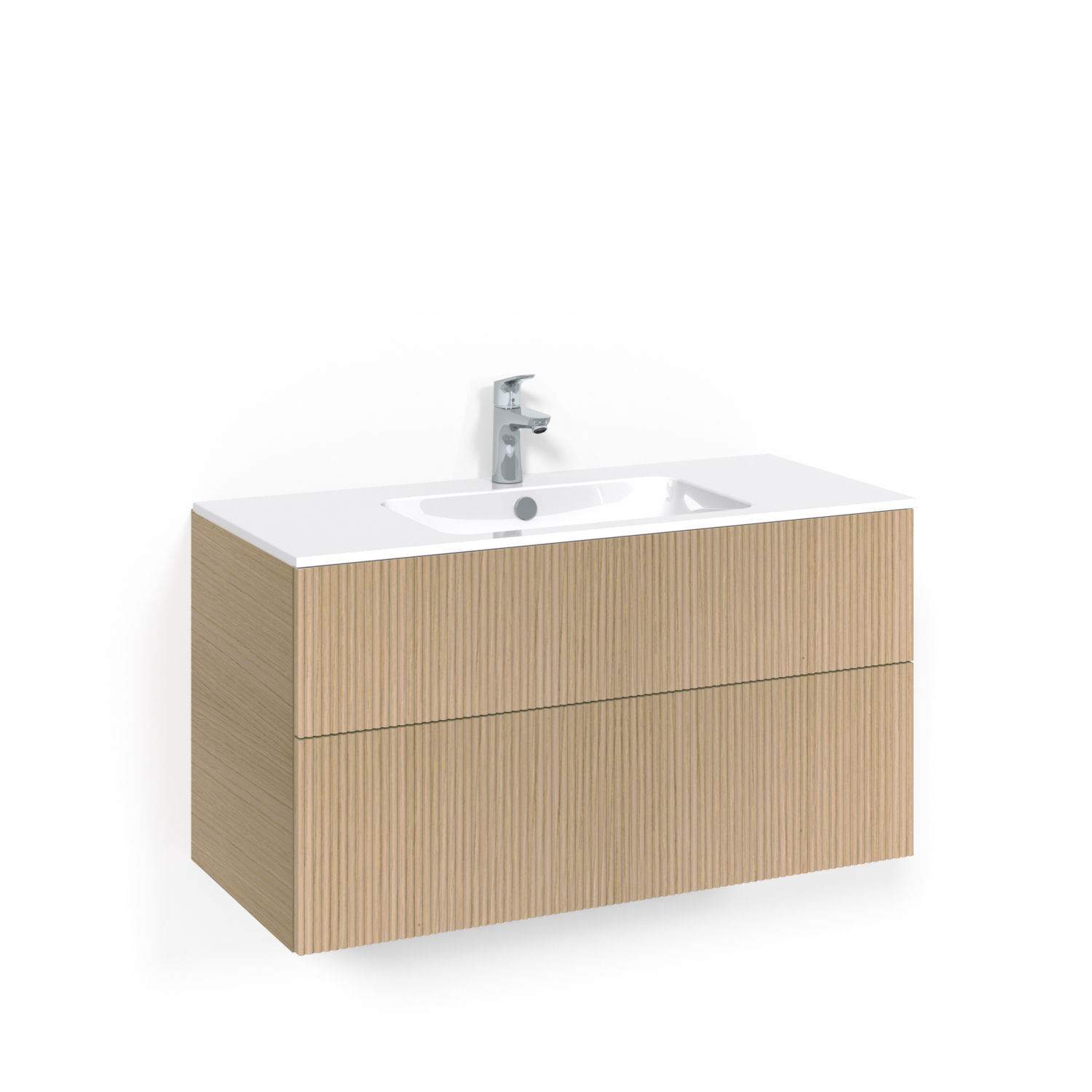 Tvättställsskåp Macro Design Crown Line är en svensktillverkad möbel där det ingår tvättställ och två mjukstängande och rymliga lådor.