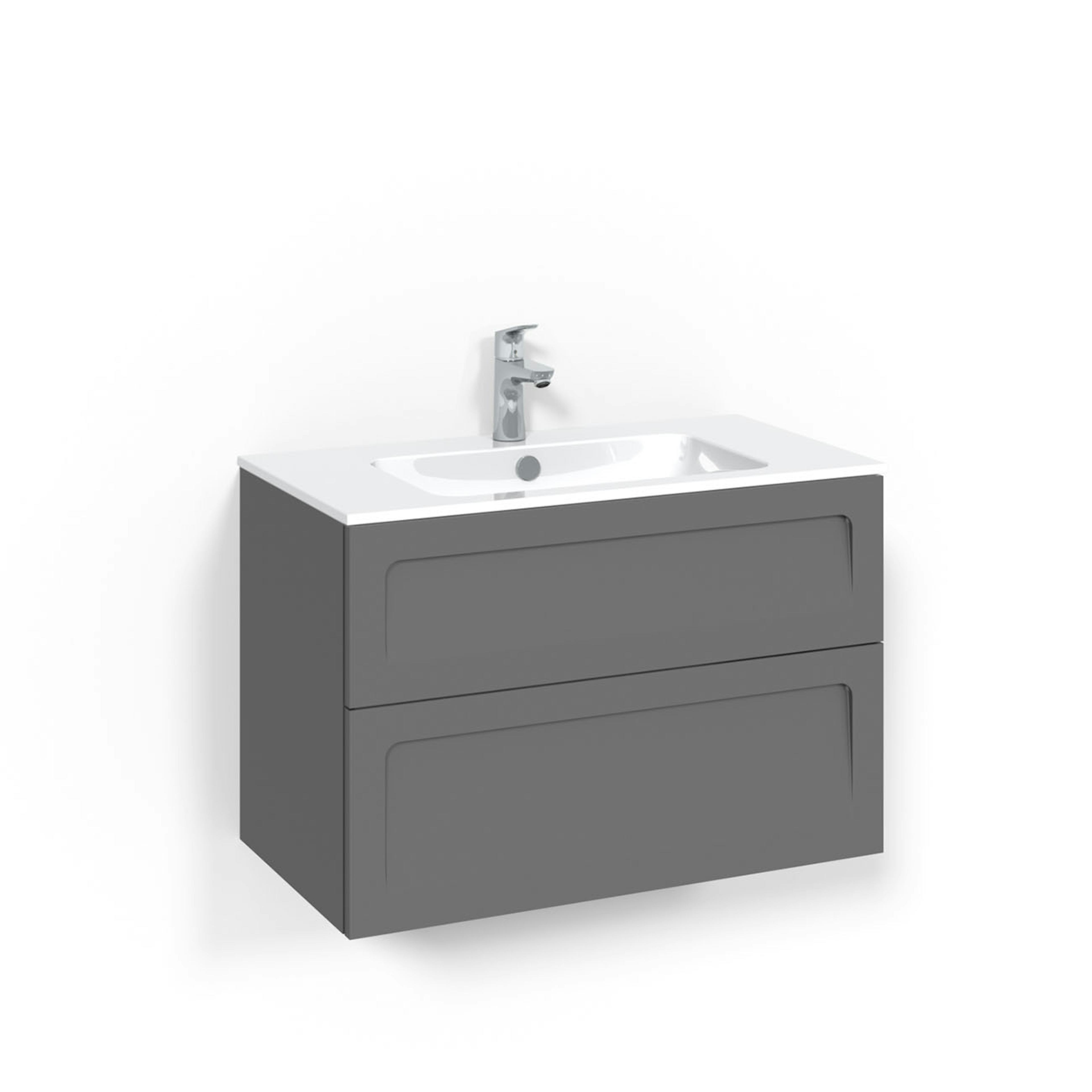 Tvättställsskåp Macro Design Crown är en svensktillverkad möbel med ramlucka där du väljer rak eller rundad kant. Tvättställsskåpet levereras med tvättställ Light 14 som är tillverkat i porslin och är 14 mm högt. Kommoden har två mjukstängande och rymliga lådor.