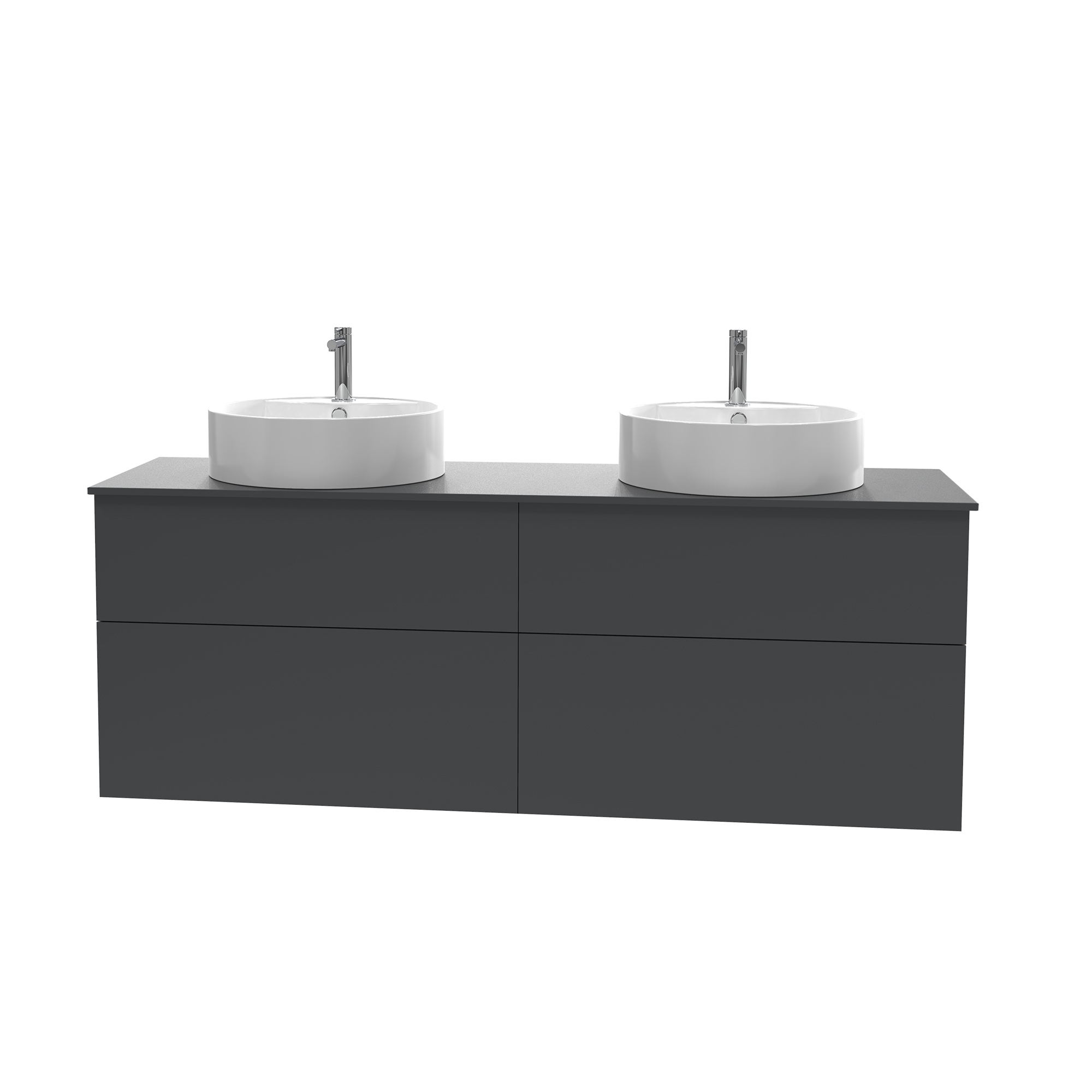 Tvättställsskåp Miller Badrum City 160 för bänkskiva med ovanpåliggande tvättställ är ett stilrent tvättställsskåp med lådor och silkeslen matt yta. Den matta ytan reflekterar minimalt med ljus och skapar en sober effekt i ditt badrum. Nanotekniken som används i materialet är den mest reptåliga yta. Miller Badrum kan erbjuda och detta medför ökad slitstyrka och längre hållbarhet. Det innovativa materialet i ytan motverkar även fingeravtryck och är tack vare sin exceptionella täthet smuts- och vattenavvisande.