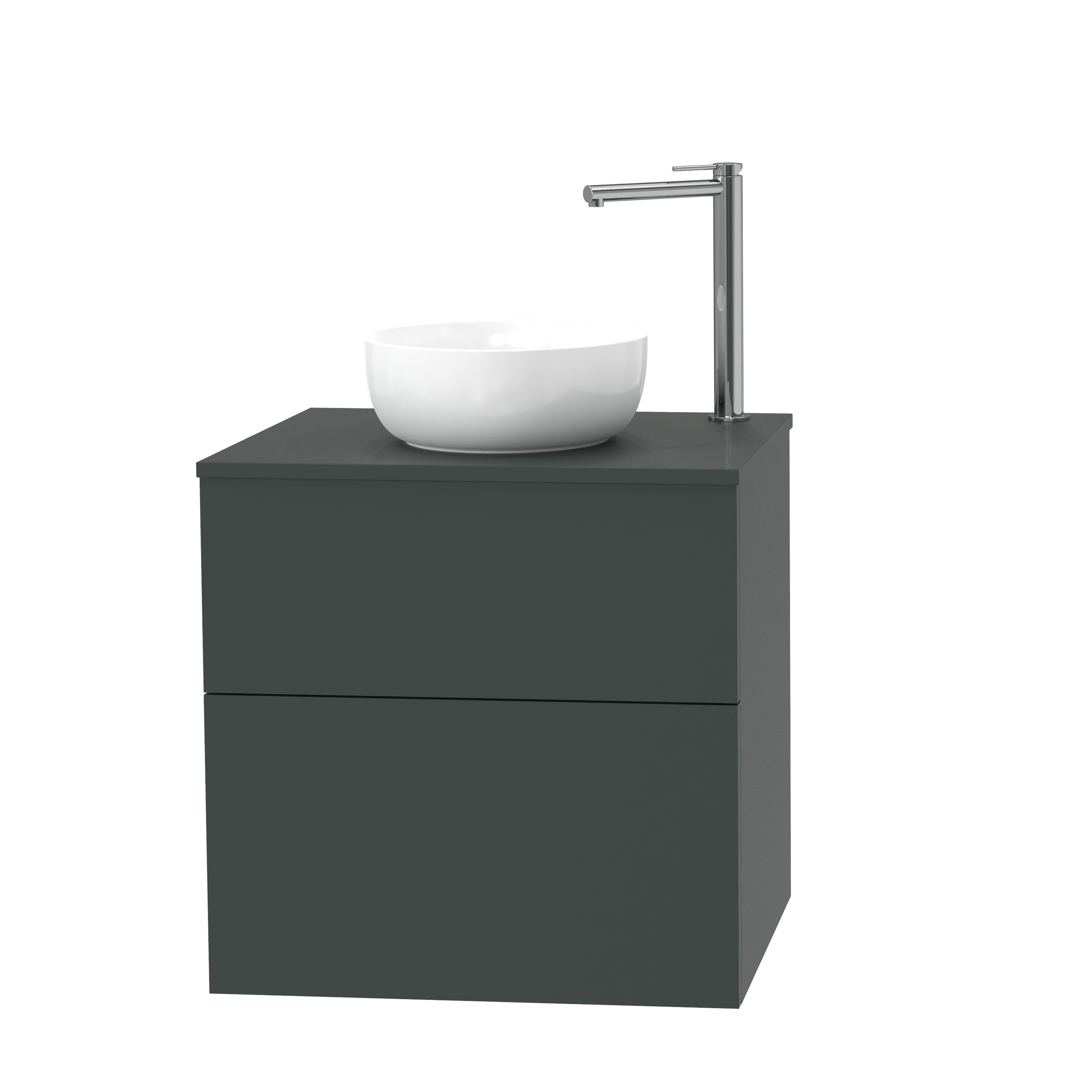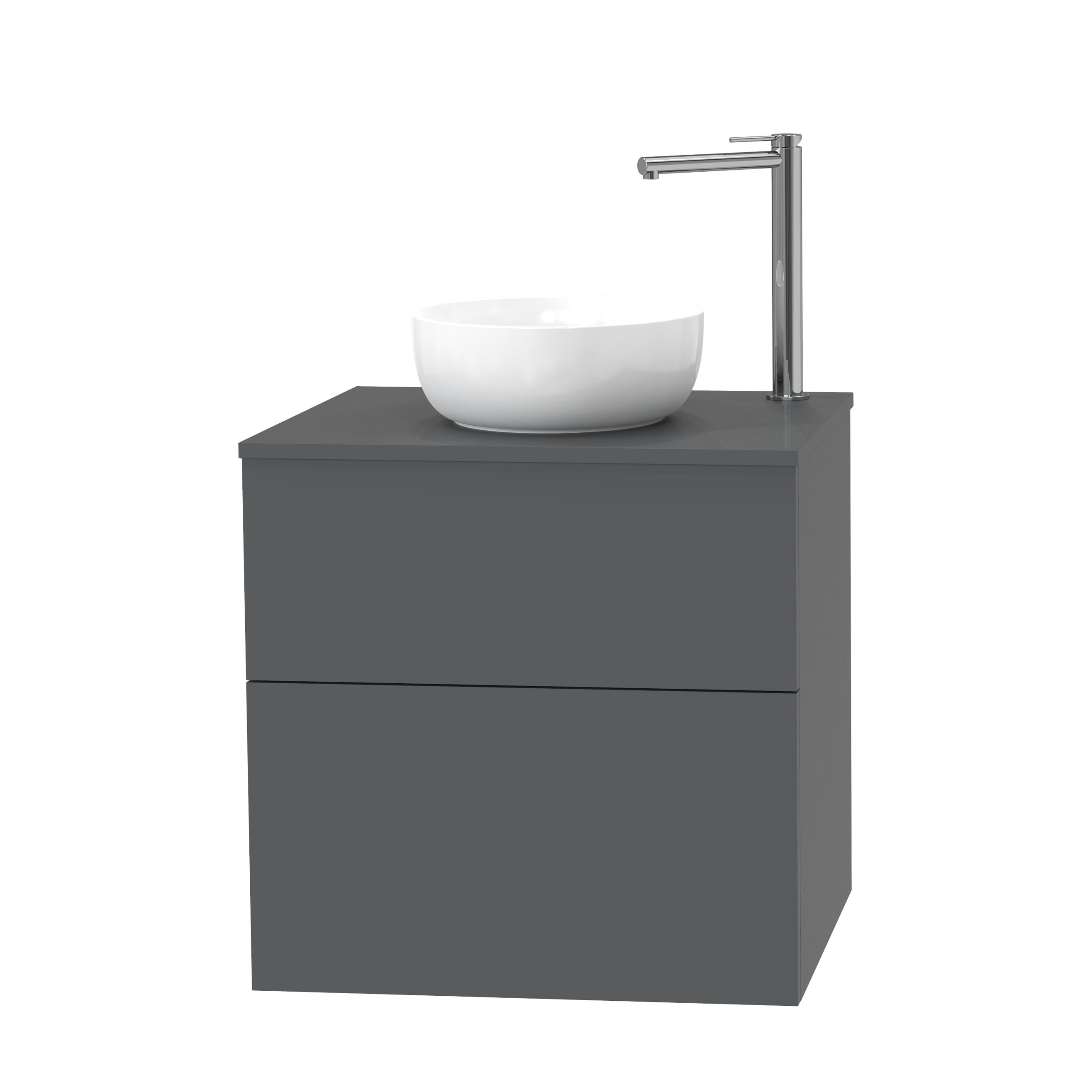 Tvättställsskåp Miller Badrum City 60 för Bänkskiva är ett stilrent tvättställsskåp med lådor och silkeslen matt yta. Den matta ytan reflekterar minimalt med ljus och skapar en sober effekt i ditt badrum. Nanotekniken som används i materialet är den mest reptåliga yta Miller Badrum kan erbjuda och detta medför ökad slitstyrka och längre hållbarhet. Det innovativa materialet i ytan motverkar även fingeravtryck och är tack vare sin exceptionella täthet smuts- och vattenavvisande.