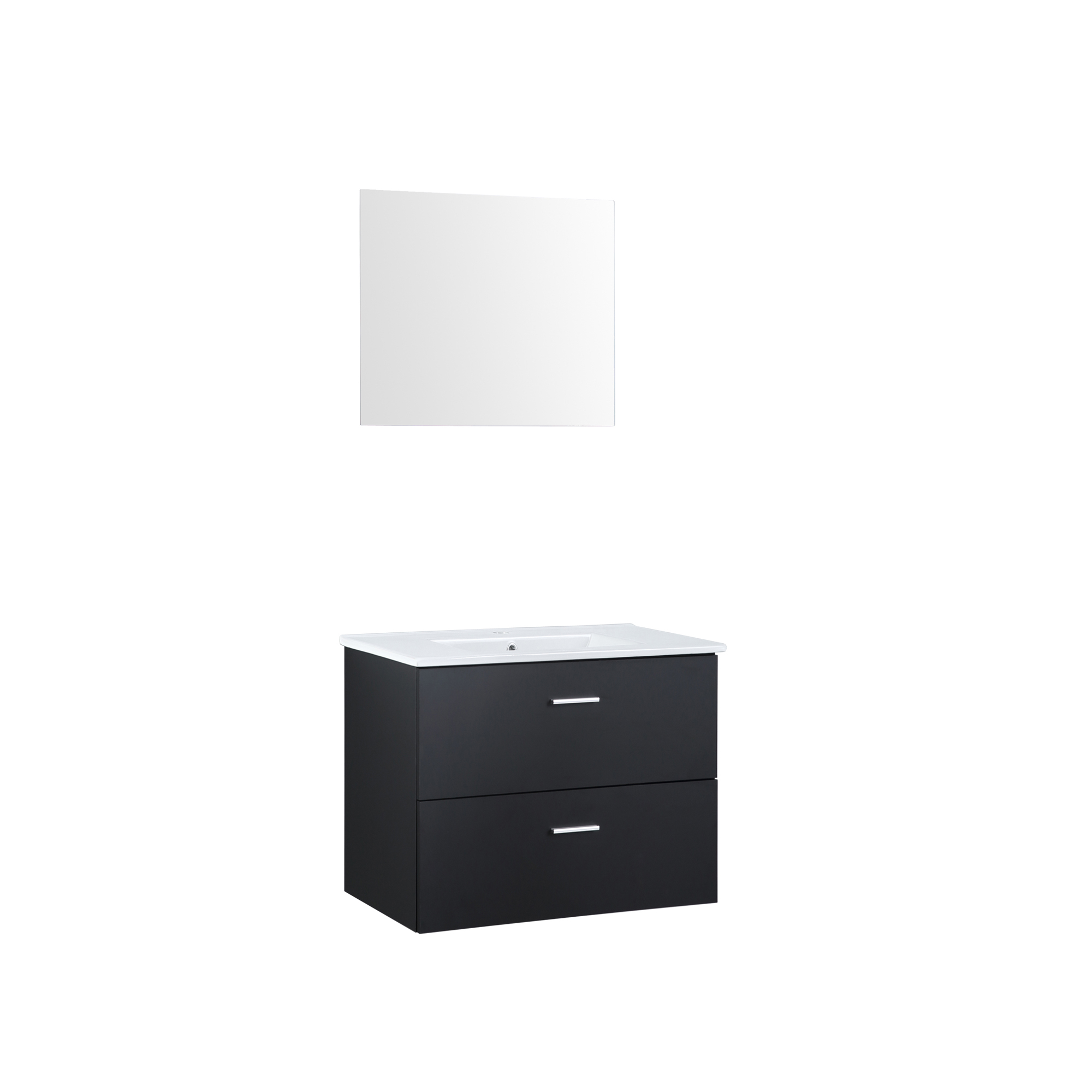 Paketet består av ett modernt underskåp som du enkelt kan förvara alla dina badrumsartiklar i, ett matchande vitt tvättställ med ett handtag som gör det enkelt att öppna möbeln och en matchande badrumsspegel. Med sin höga kvalité och gedigna konstruktion är det en hållbar och robust möbel.