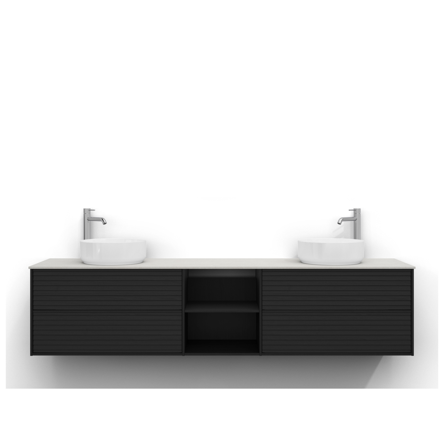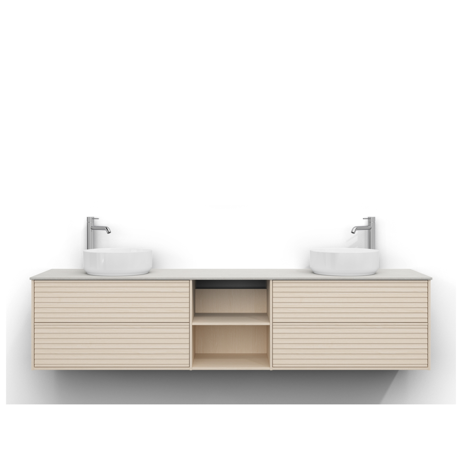 Tvättställsskåp Svedbergs Epos 200x45 med öppen föravaring och 2+2 lådor med mjukstängande lådskena som gör att hela lådans längd kan användas. Epos 200x45 kombinerar stilren design med generösa ytor för vardagen. De noggrant utvalda materialen förmedlar kvalitet i varje detalj och skapar en harmonisk helhet i badrummet.