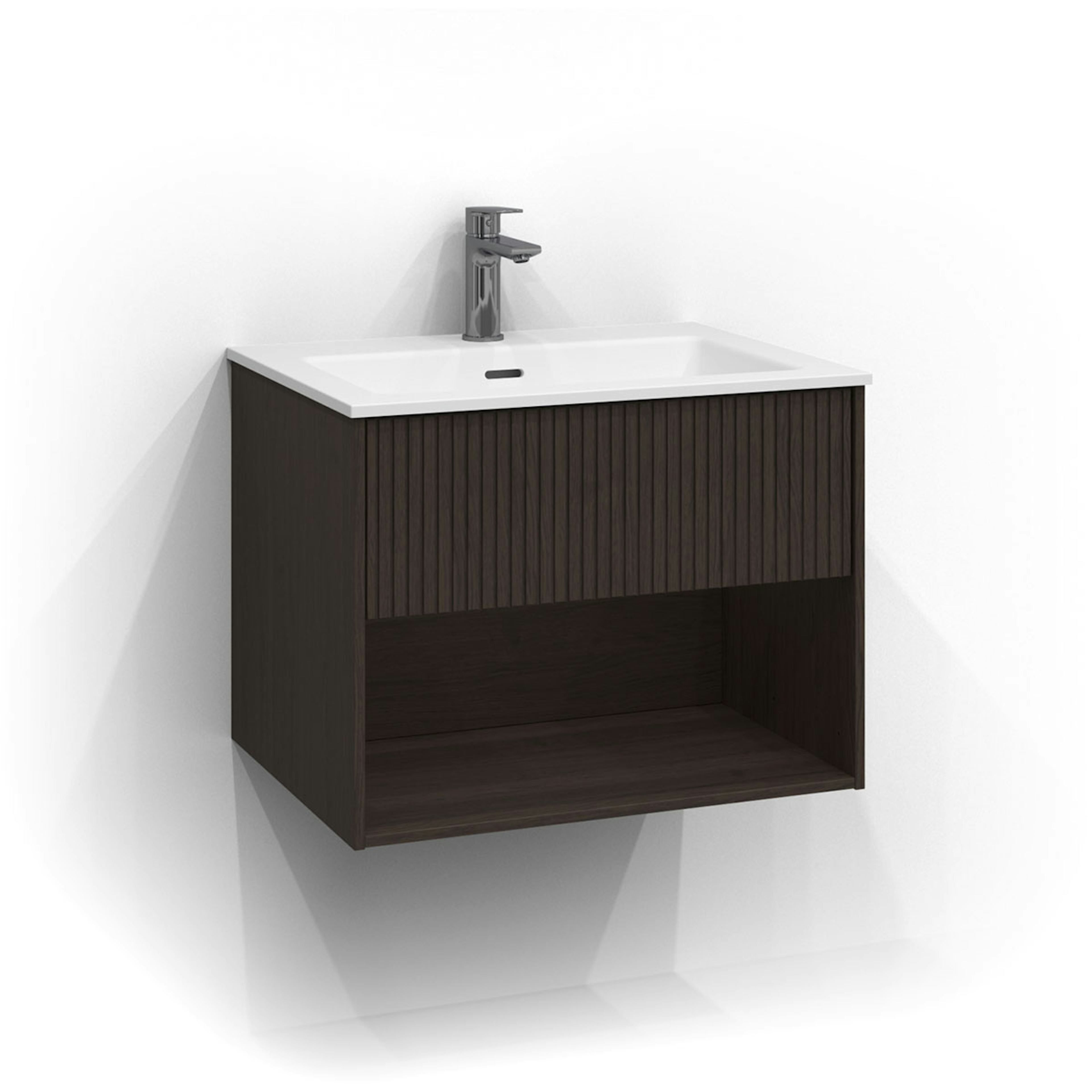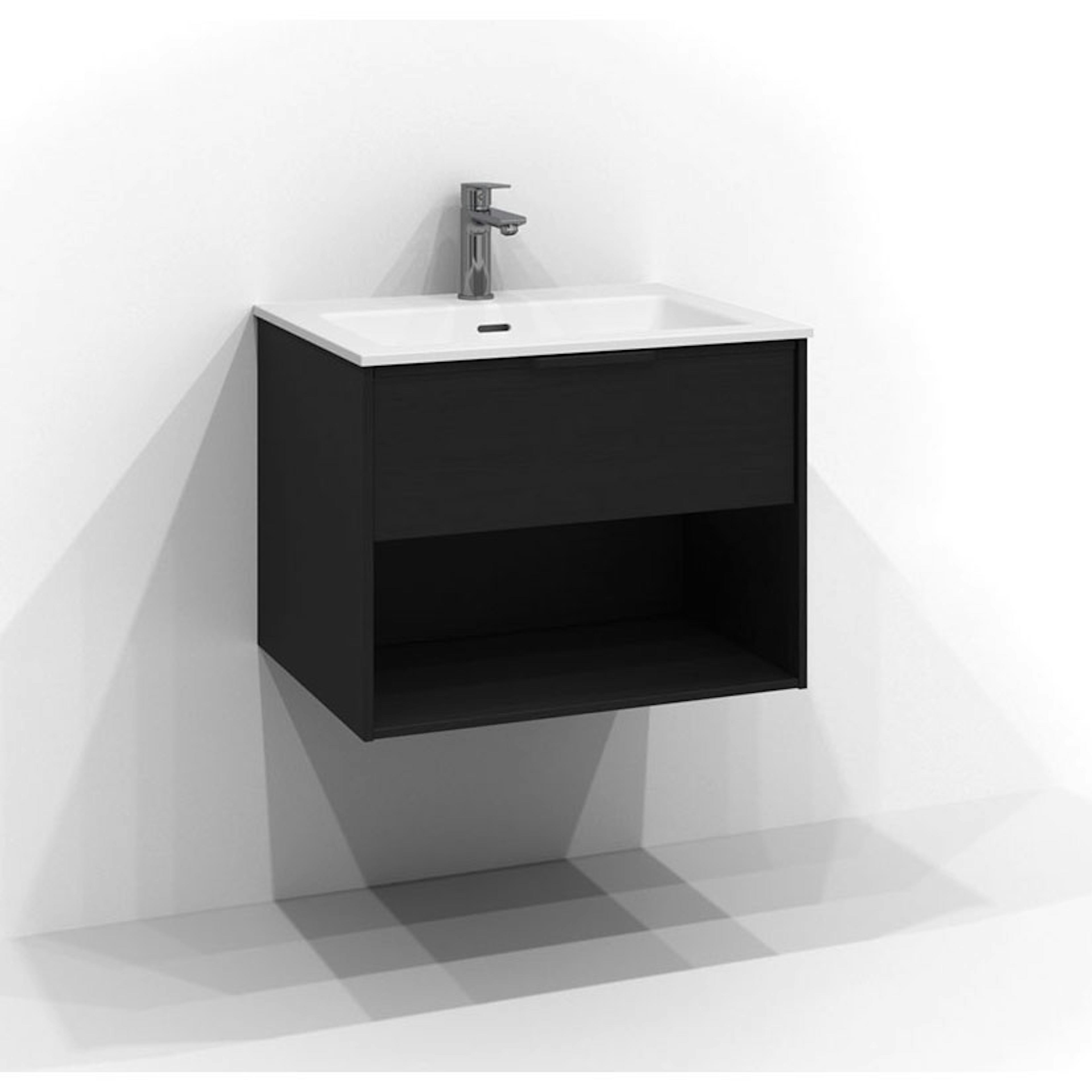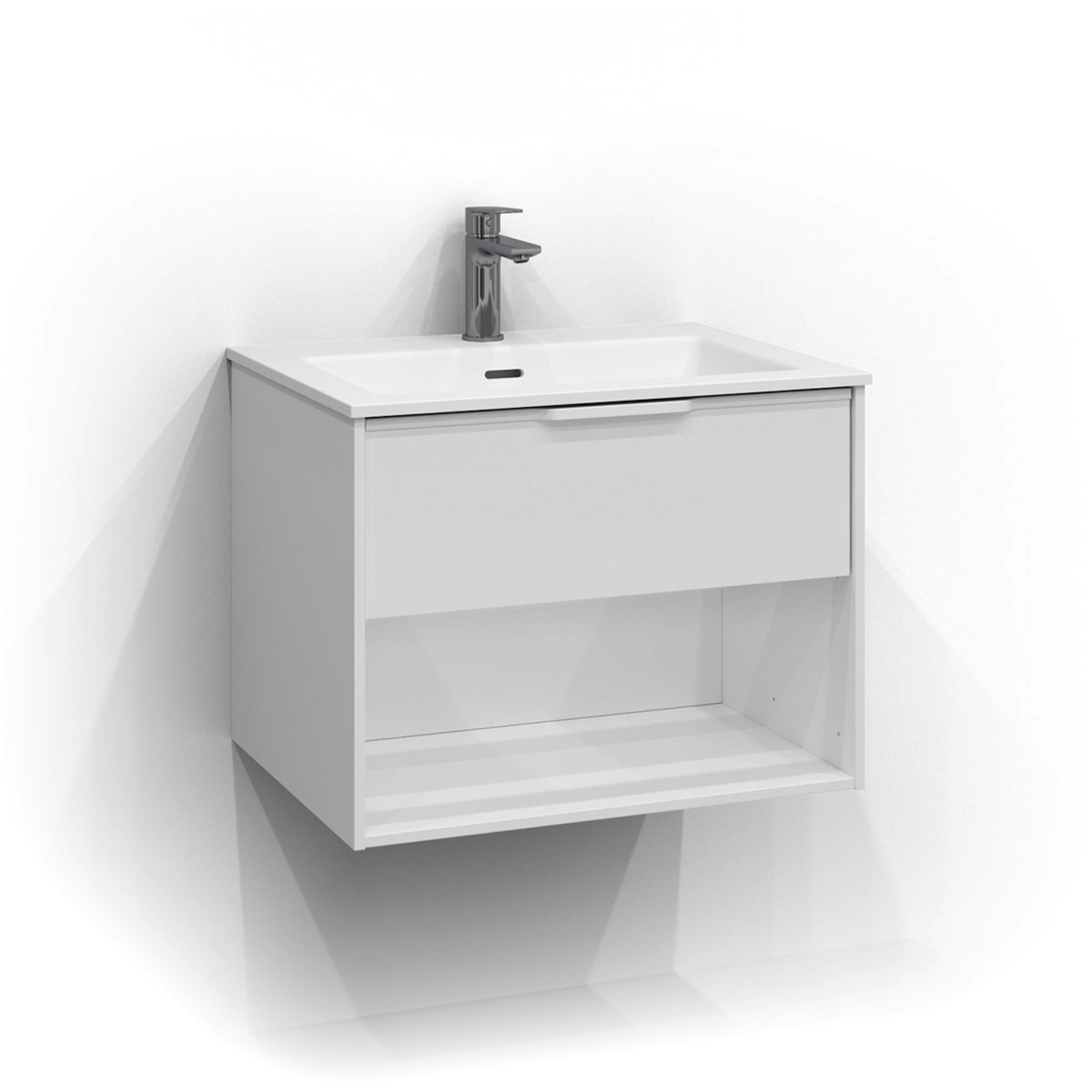 Tvättställsskåp Svedbergs Epos 60x45 med 1 Låda och Öppen FörvaringVit Ask, Plan, Push open