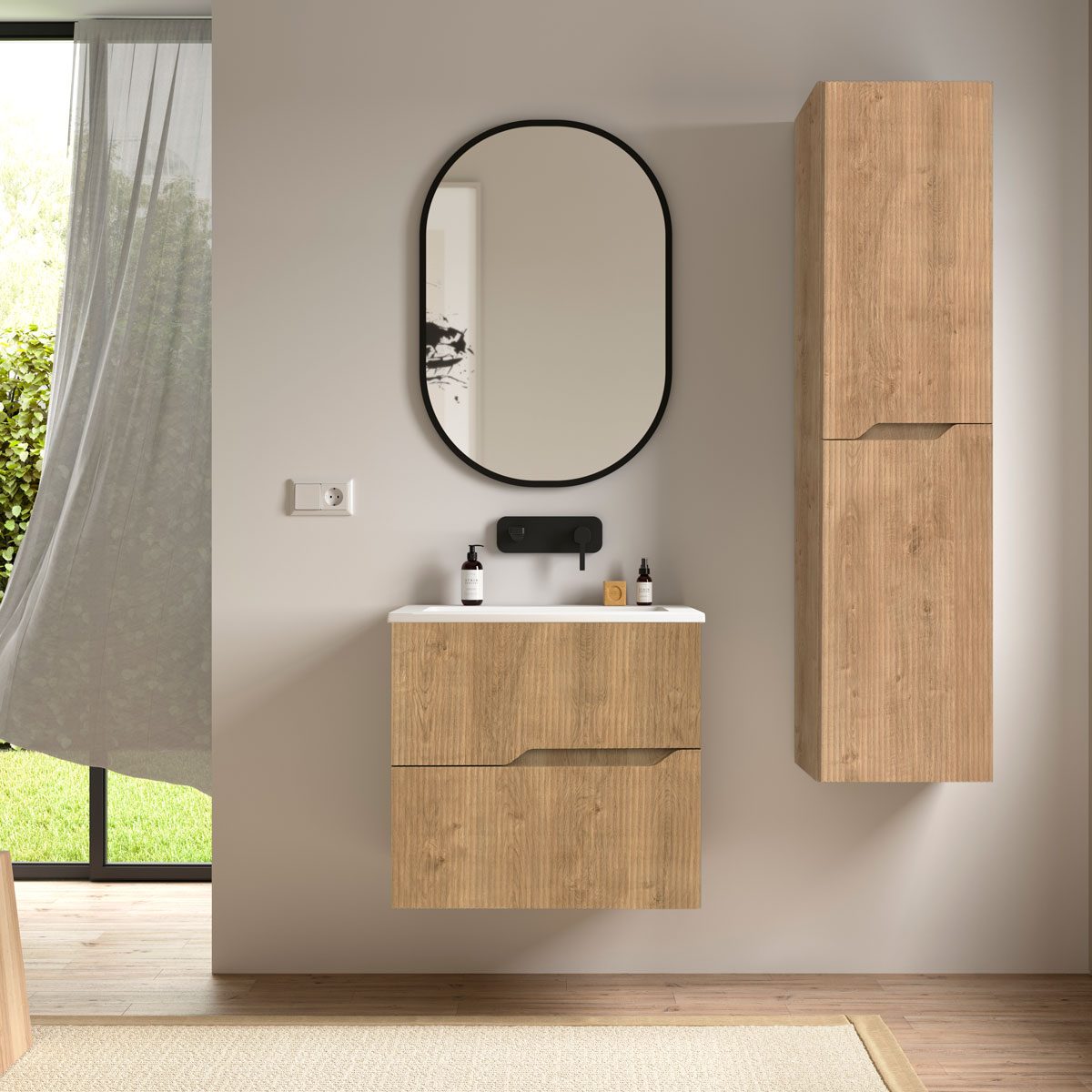 Tvättställsskåp Tenfors Bambu är en badrumskommod som kombinerar sofistikerad design med praktiska funktioner, och är skapad för att bli ett blickfång i varje badrum. Med sin unika textur på lådfronterna, skapar den ett modernt och naturligt utseende som samtidigt är varmt och inbjudande. Texturen på lådfronterna är både estetiskt tilltalande och praktiskt funktionell, vilket gör möbeln till en perfekt balans mellan stil och användbarhet. Finns att köpa i olika färger och storlekar. Komplettera med tvättställ, tvättställsblandare och bottenventil.