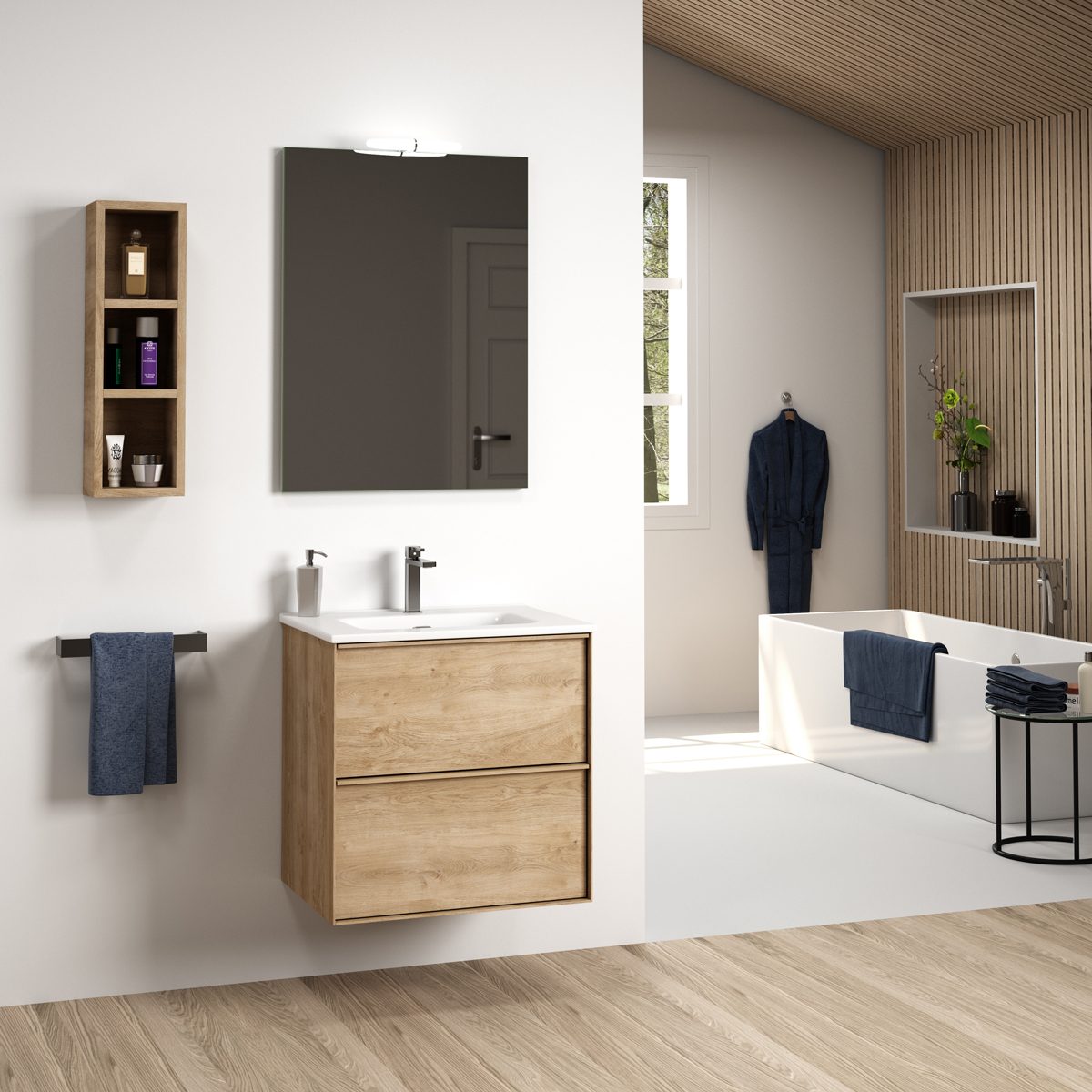 Oavsett om du väljer en ljus och naturlig ekfinish, slätlackerad yta eller en mörkare och sofistikerad valnötsfinish, erbjuder Tenfors Nordlig en perfekt balans mellan praktiska lösningar och stilren design. Serien är idealisk för dig som söker en elegant och genomtänkt möbelserie som lyfter ditt badrum till nya nivåer av funktionalitet och estetik.