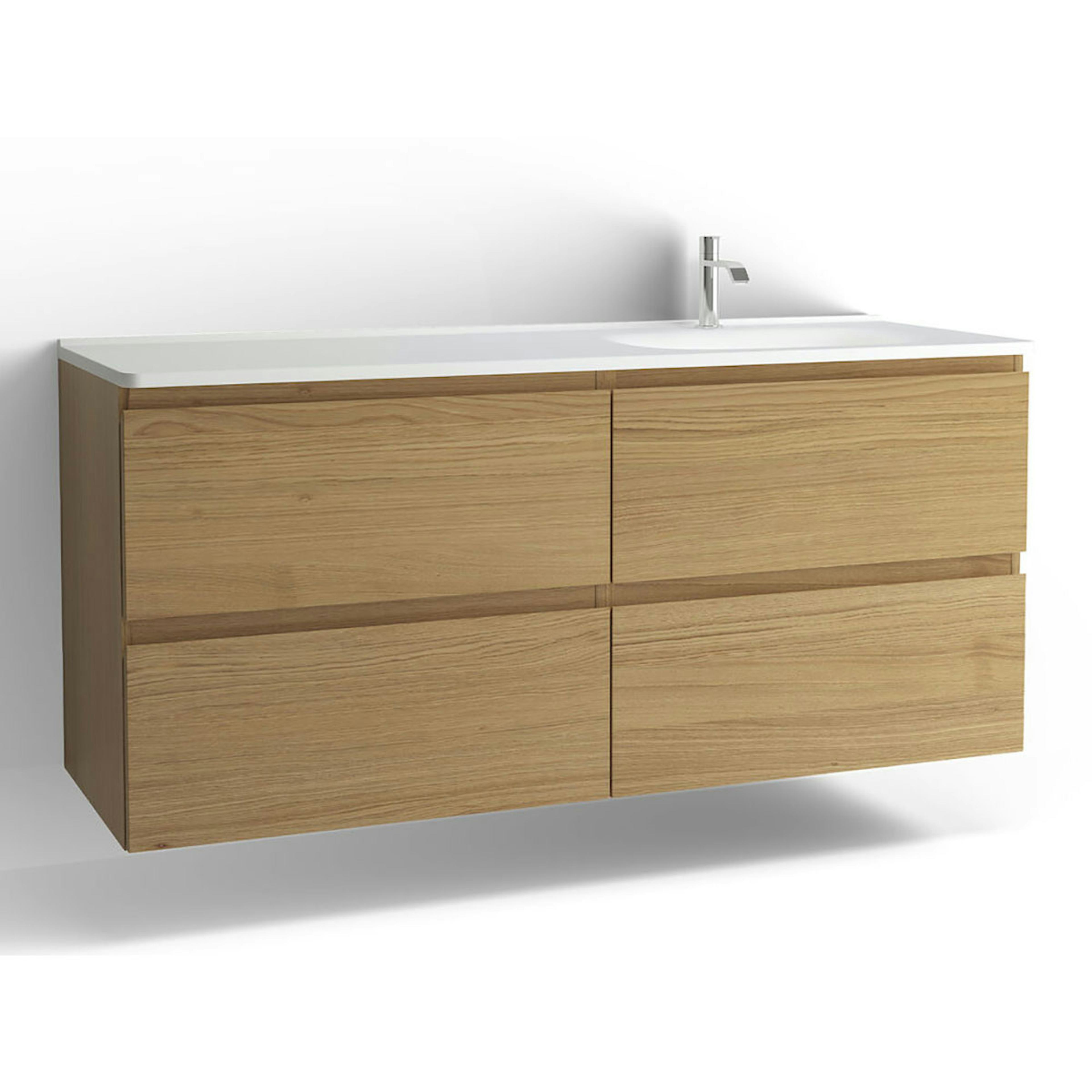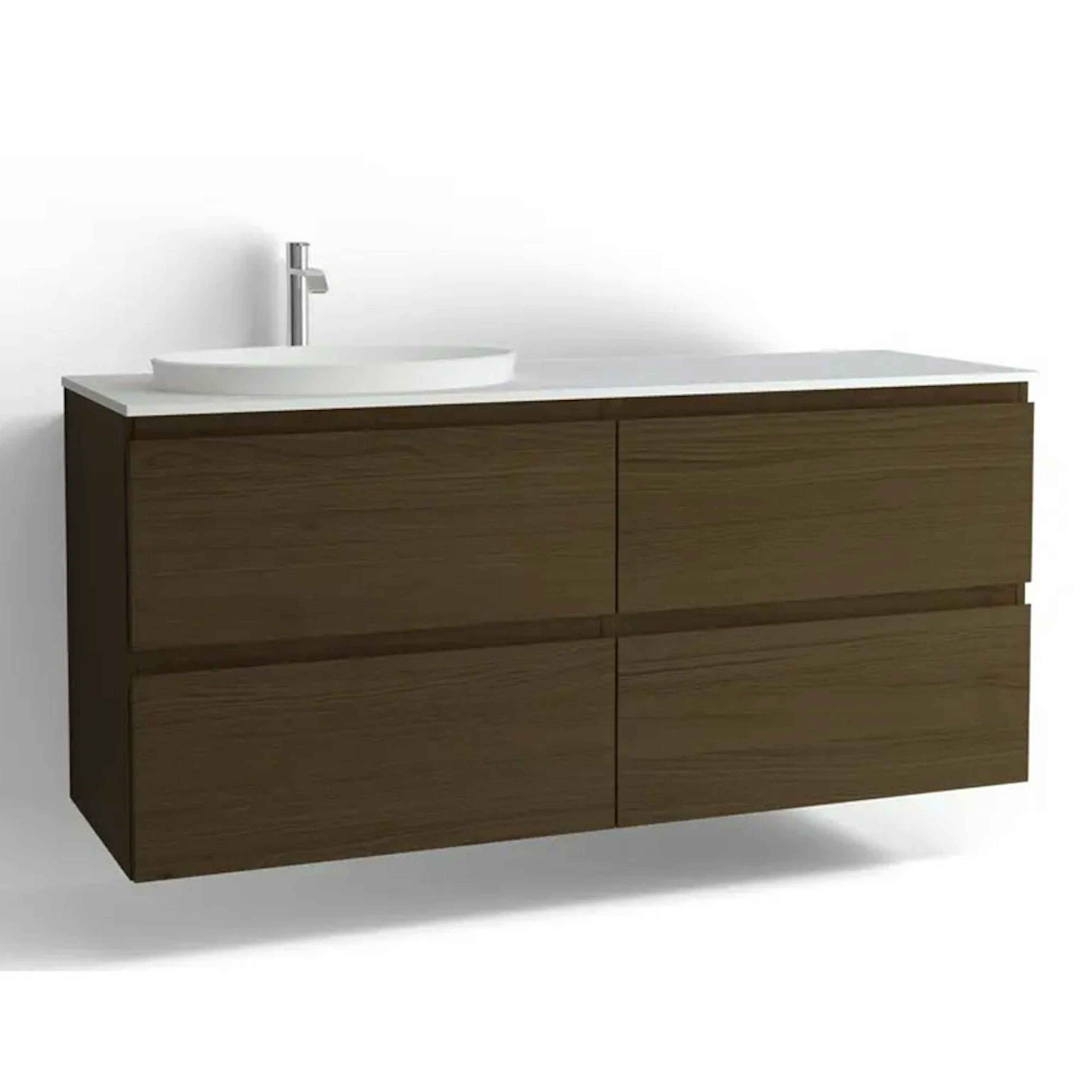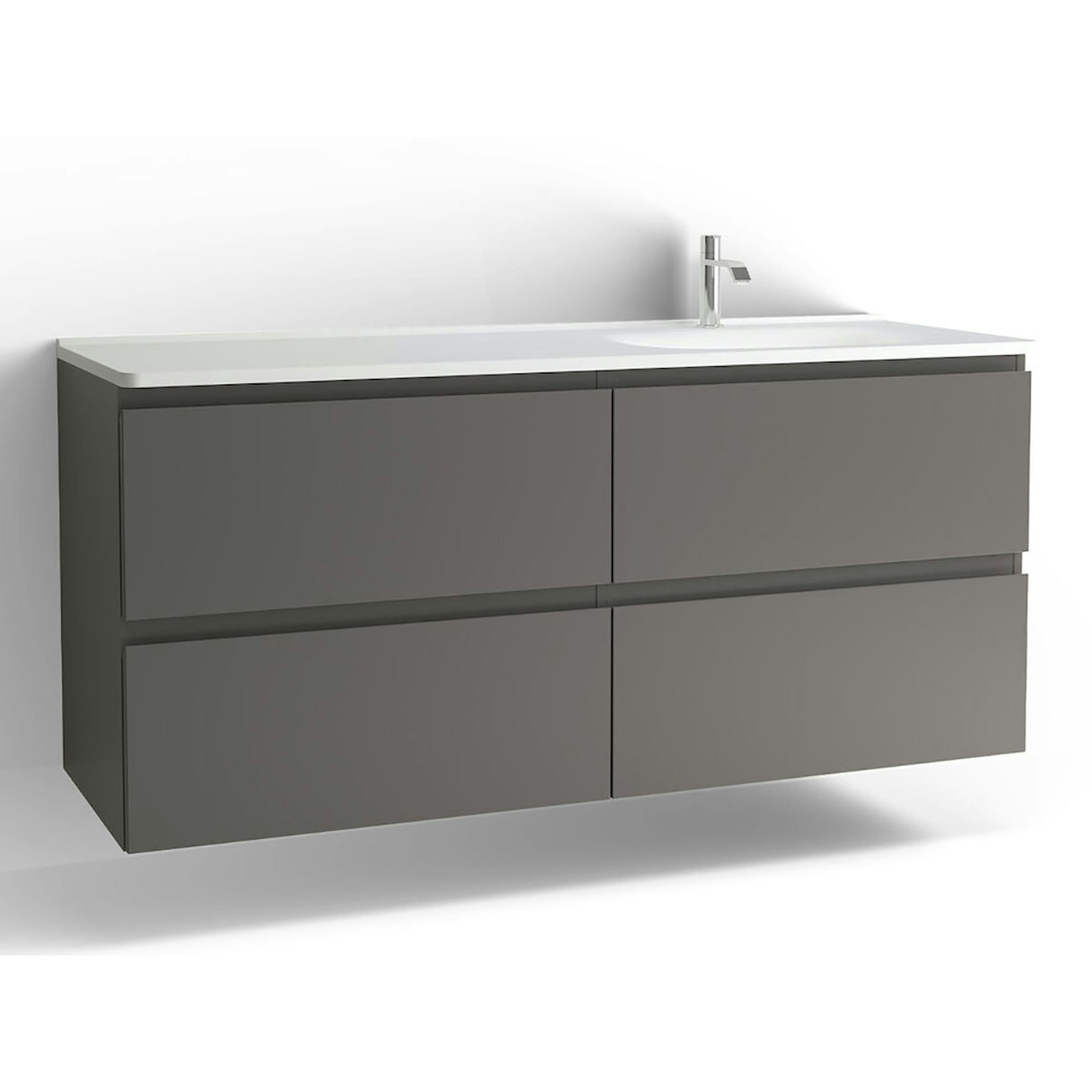 Tvättställsskåp Vedum Flow 1500 med 4 LådorBetonggrå, med Eluttag