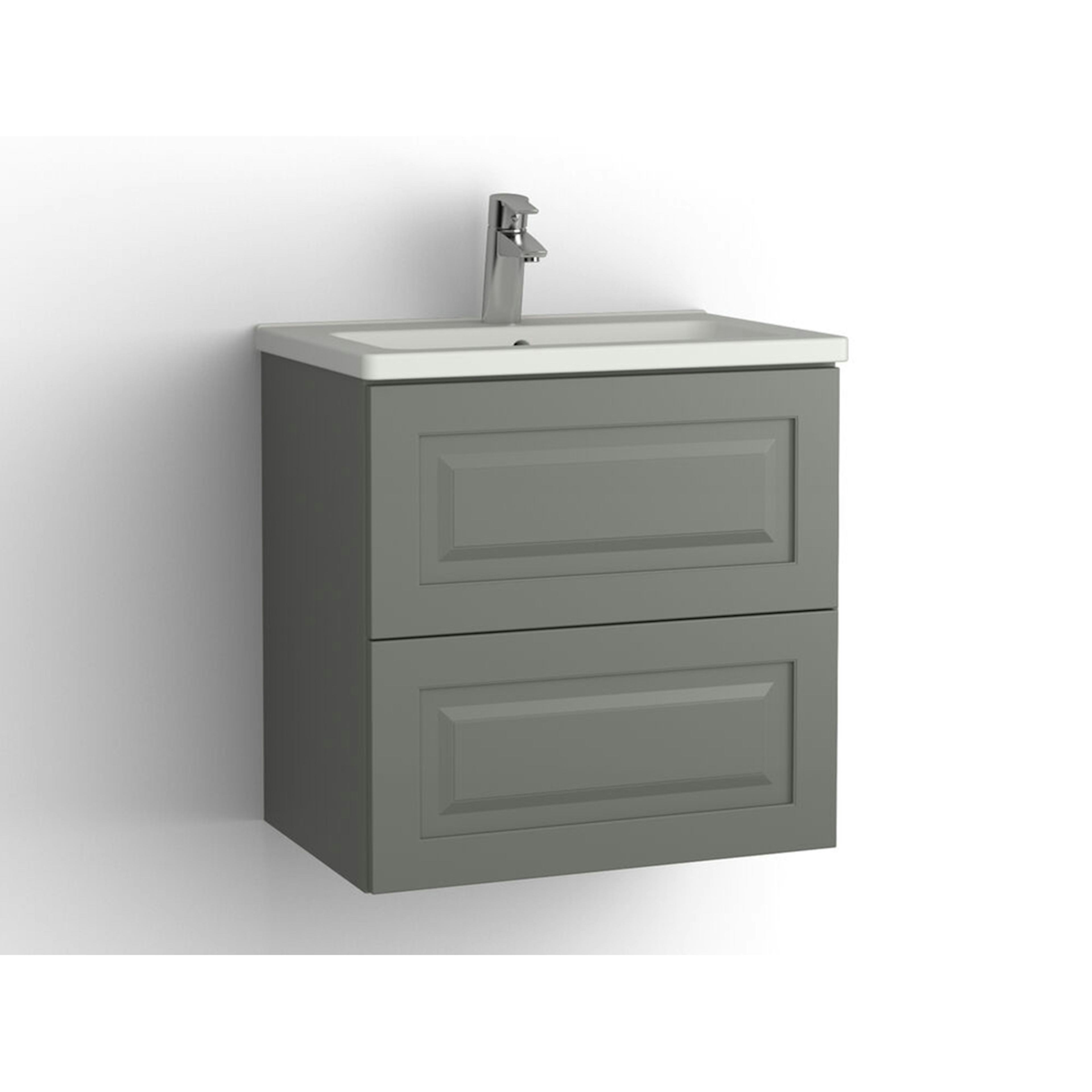 Tvättställsskåp Vedum Free 600 Compact med 2 LådorBetonggrå, Alice, utan Eluttag, utan Pushfunktion