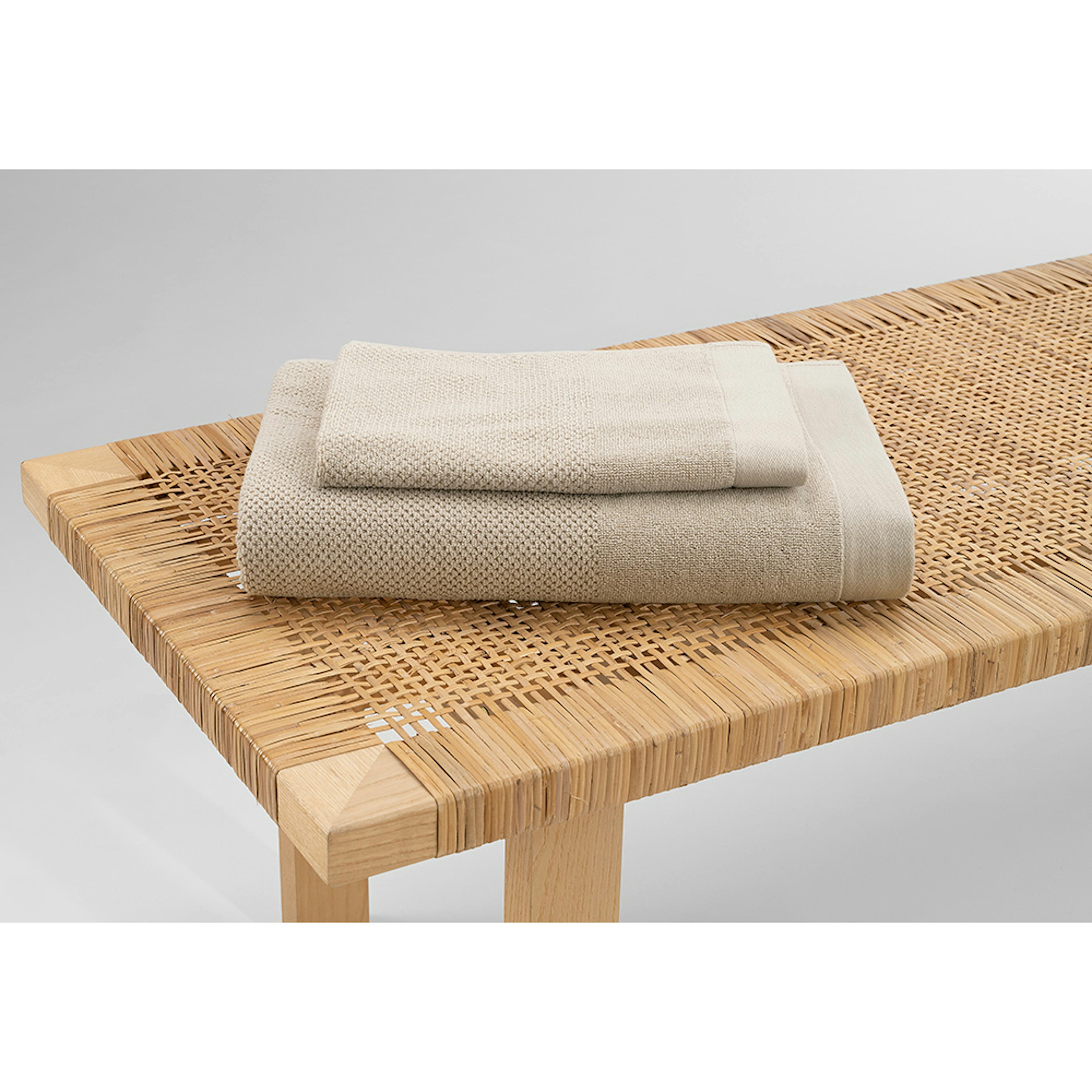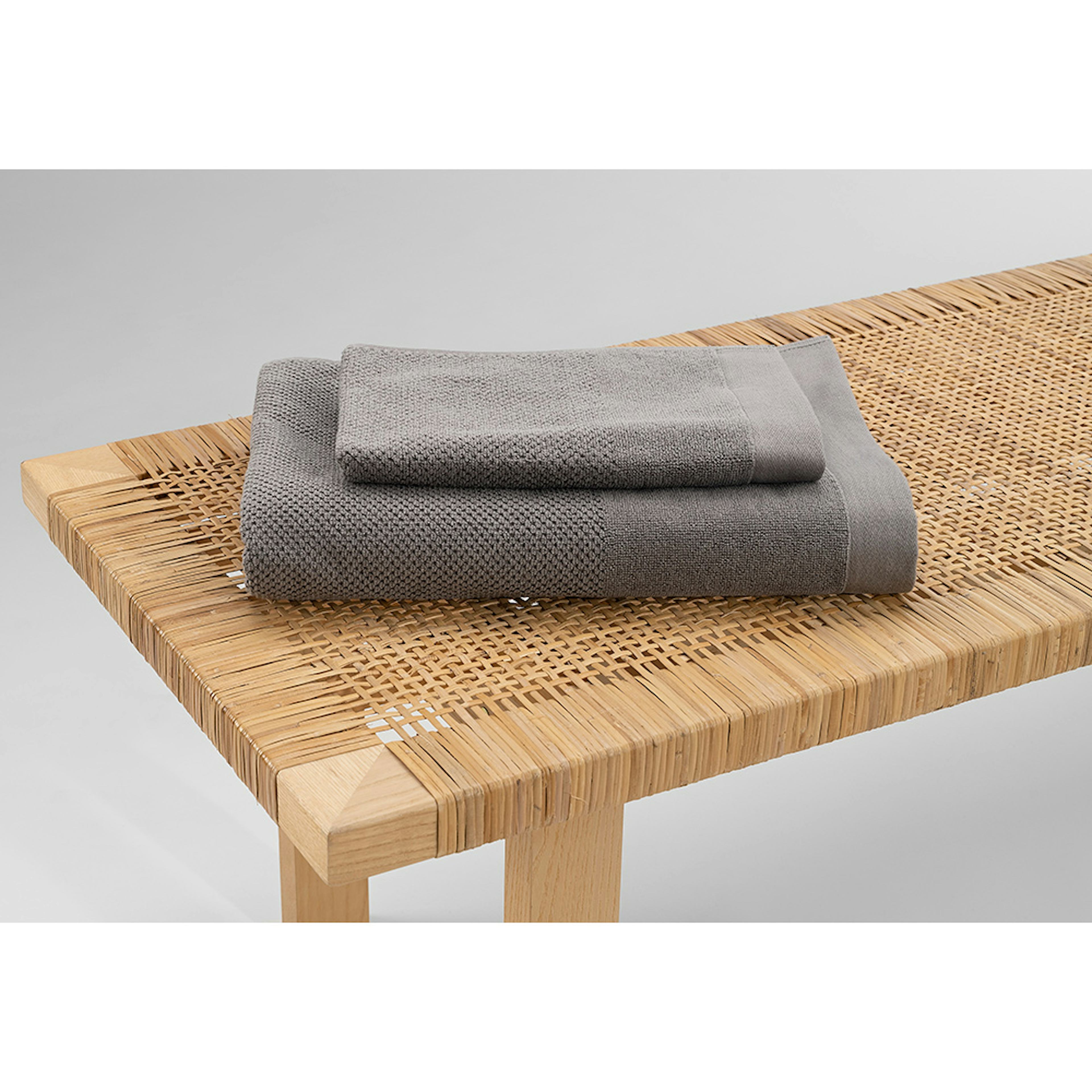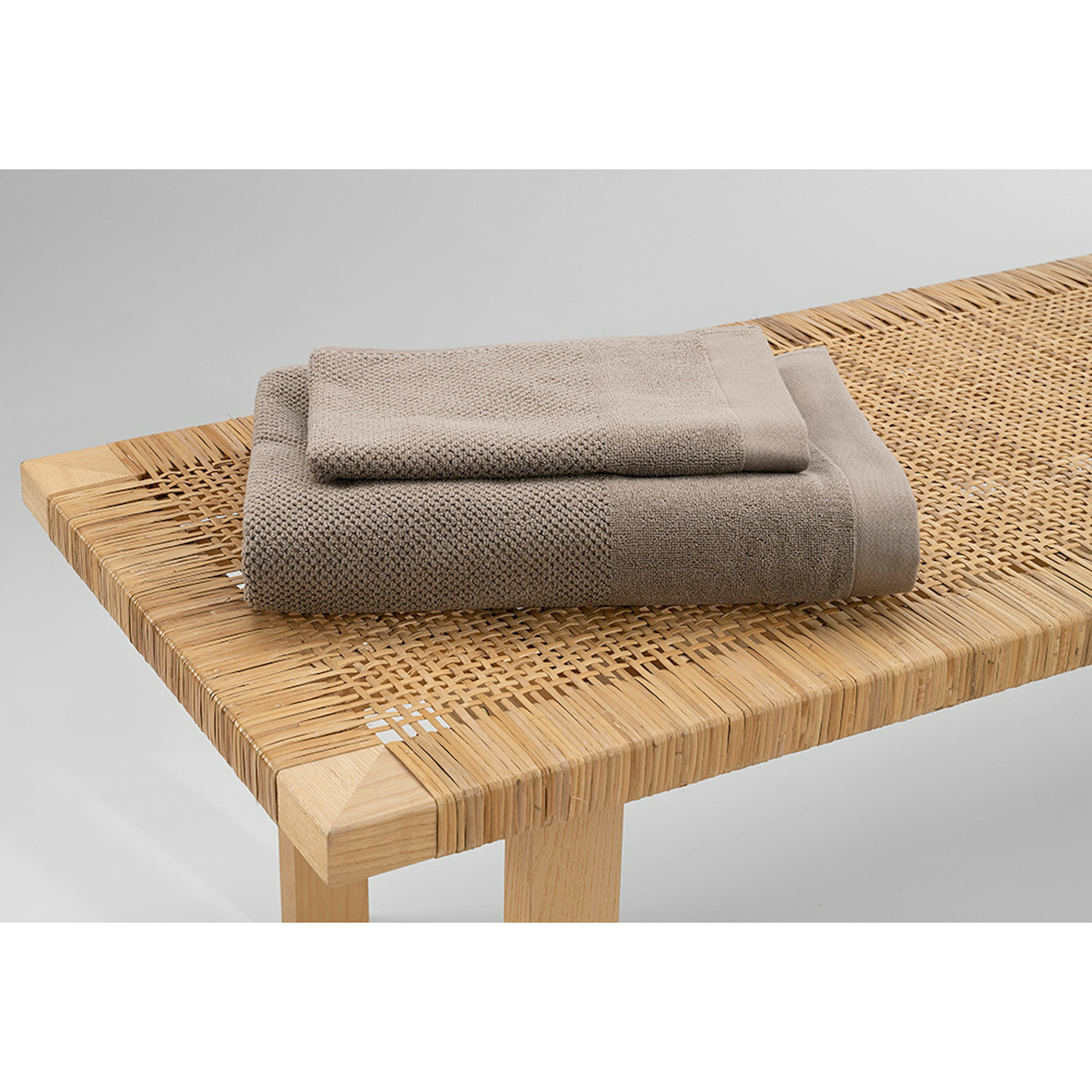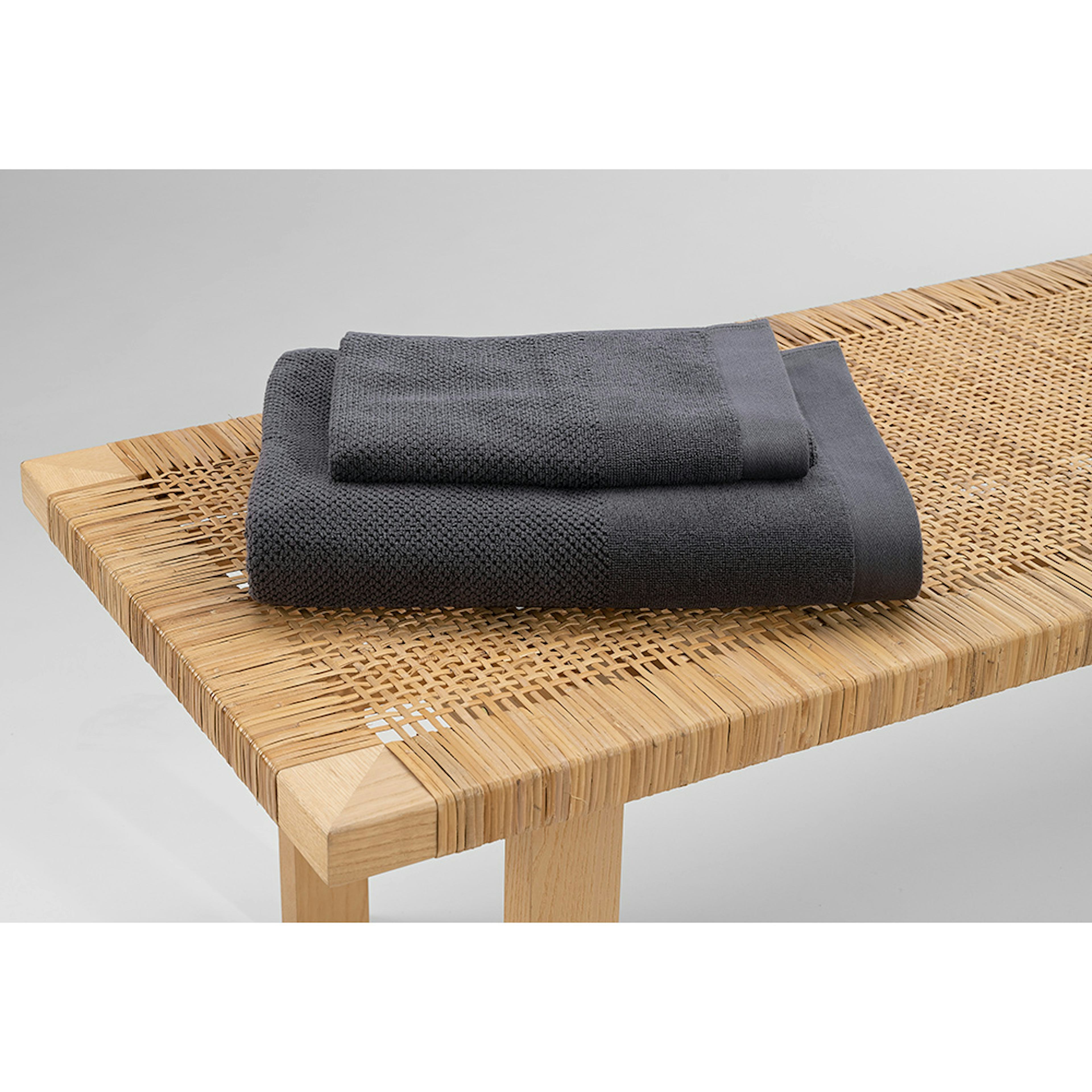Borganäs enzo frotté med en fin struktur, kontrasterande slät bård samt en bred kant nedtill. Tillverkad av 100% bomull med hängare på kortsidorna, mått 50x70 cm.
